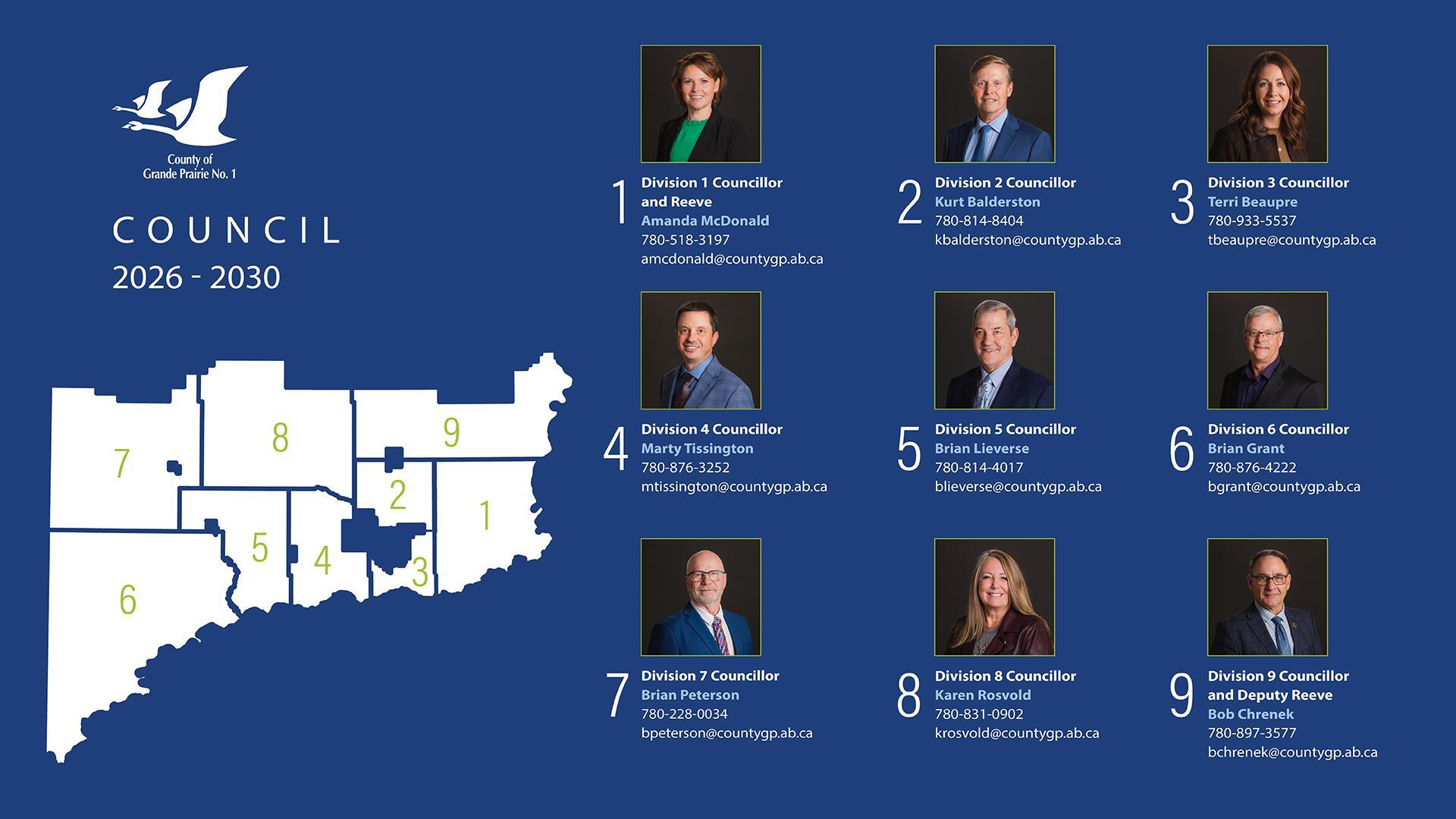 These strategic priorities articulate Council’s focus for the term and guide decisions, investments, and actions across the County of Grande Prairie.