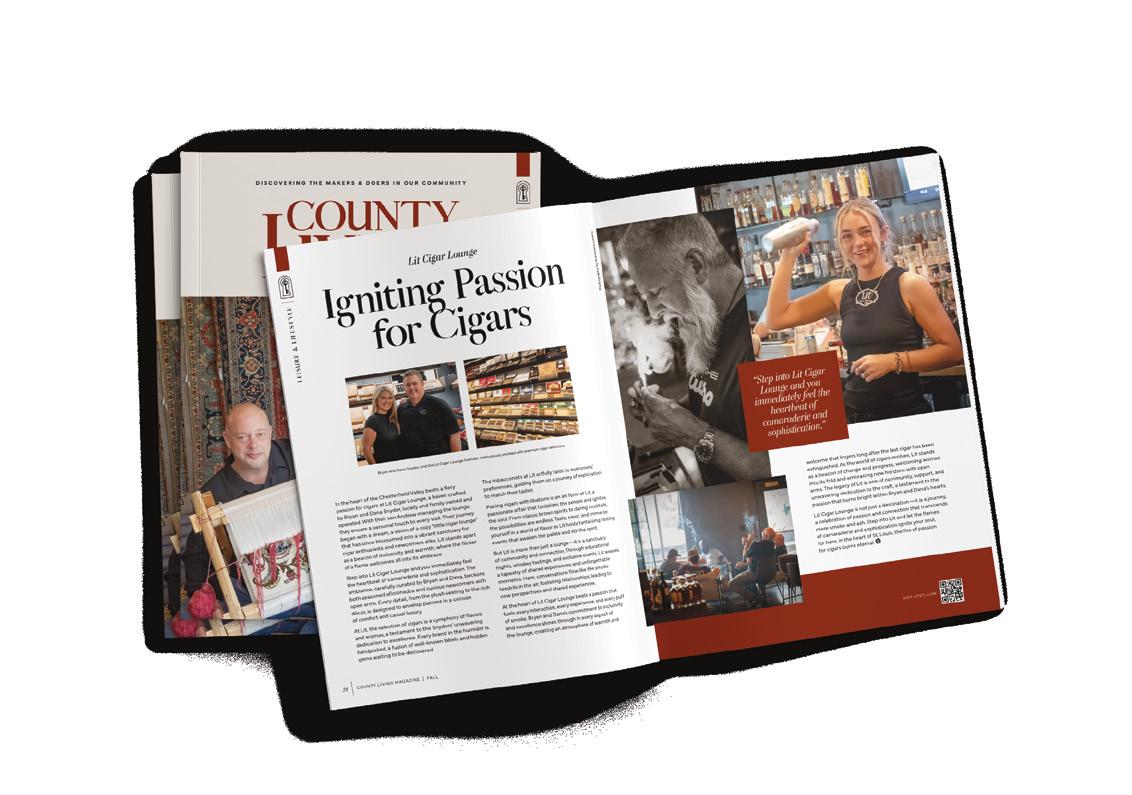 County Living Magazine represents the “Key to the County”, with the addition of the key insignia on the cover and throughout the book. It is our mission to open new doors, increase brand awareness and tell the stories behind the businesses, local leaders, forward thinking influencers, the artisans and the people who inspire us.