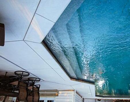 THE UNDER DECK CEILING IS THE MOST COST-EFFECTIVE SOLUTION FOR PROVIDING INCREASED FLEXIBILITY IN YOUR POOLSIDE LIVING OPTIONS. The DryPro Under Deck ceiling creates dry, comfortable spaces below decks, providing shade and rain protection for outdoor seating areas or bars. Built-in gutters channel away rain from the deck above.