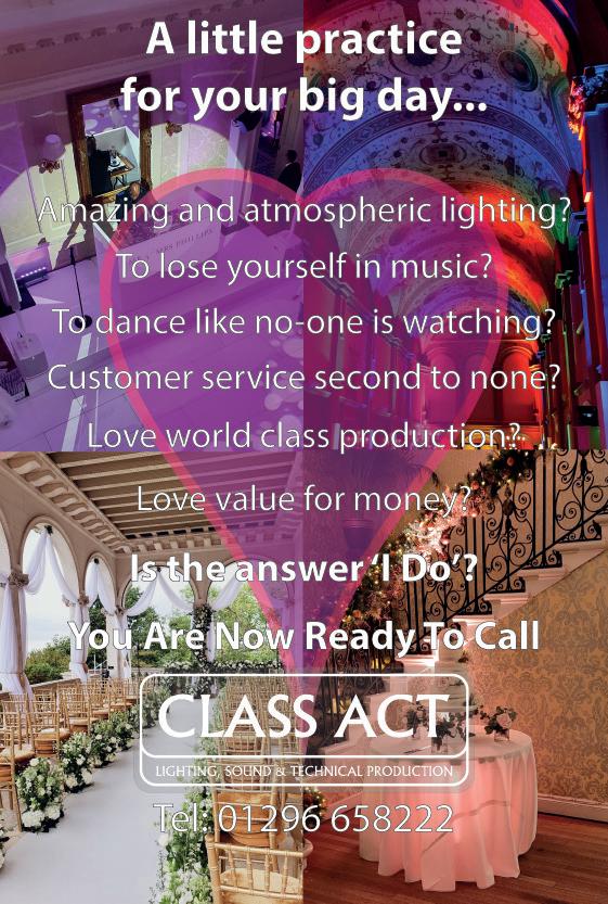 @CWM_YBBOW @countyweddingmagazines Visit us online at www.yourberksbucksoxon.wedding, www.county.wedding and www.countyweddingevents.com BEAUTY BUZZ All the latest bridal lust-haves ALL DRESSED UP Venue styling ideas A TOUCH OF MAGIC Enchanting, fairytale venues HAT’S OFF Bridal headpieces, veils, fascinators and hats OCTOBER/NOVEMBER 2023 LOCAL LOVE Real wedding stories SPOTLIGHT ON... Wedding venues in North Bucks & North Oxon 94