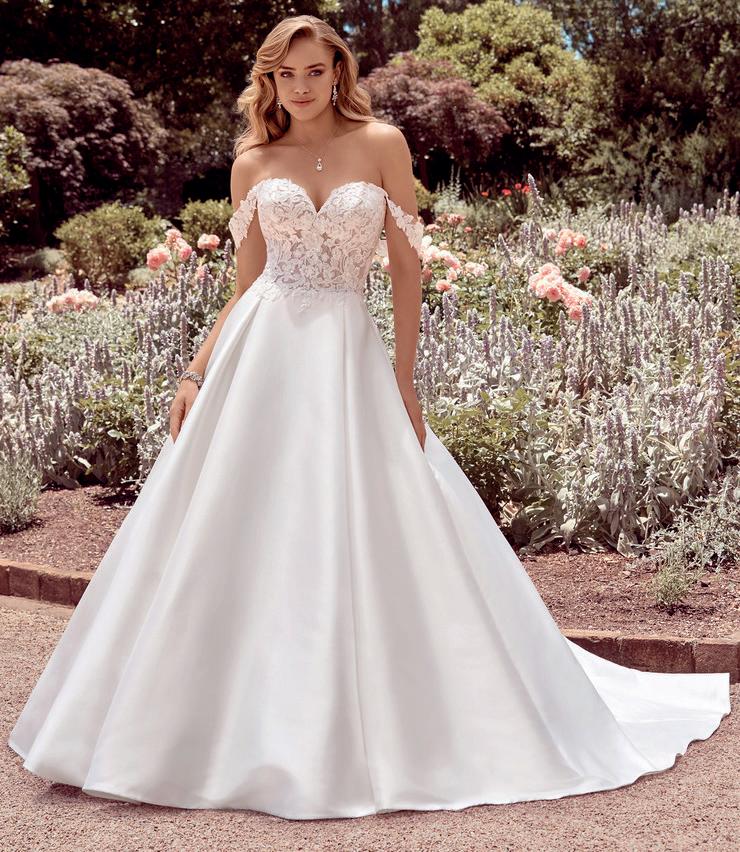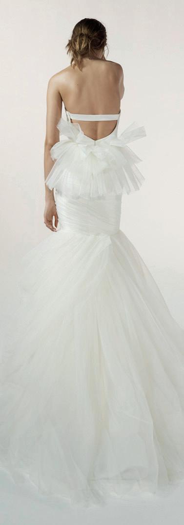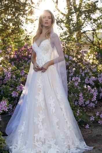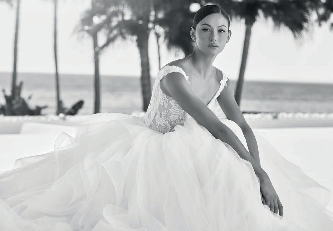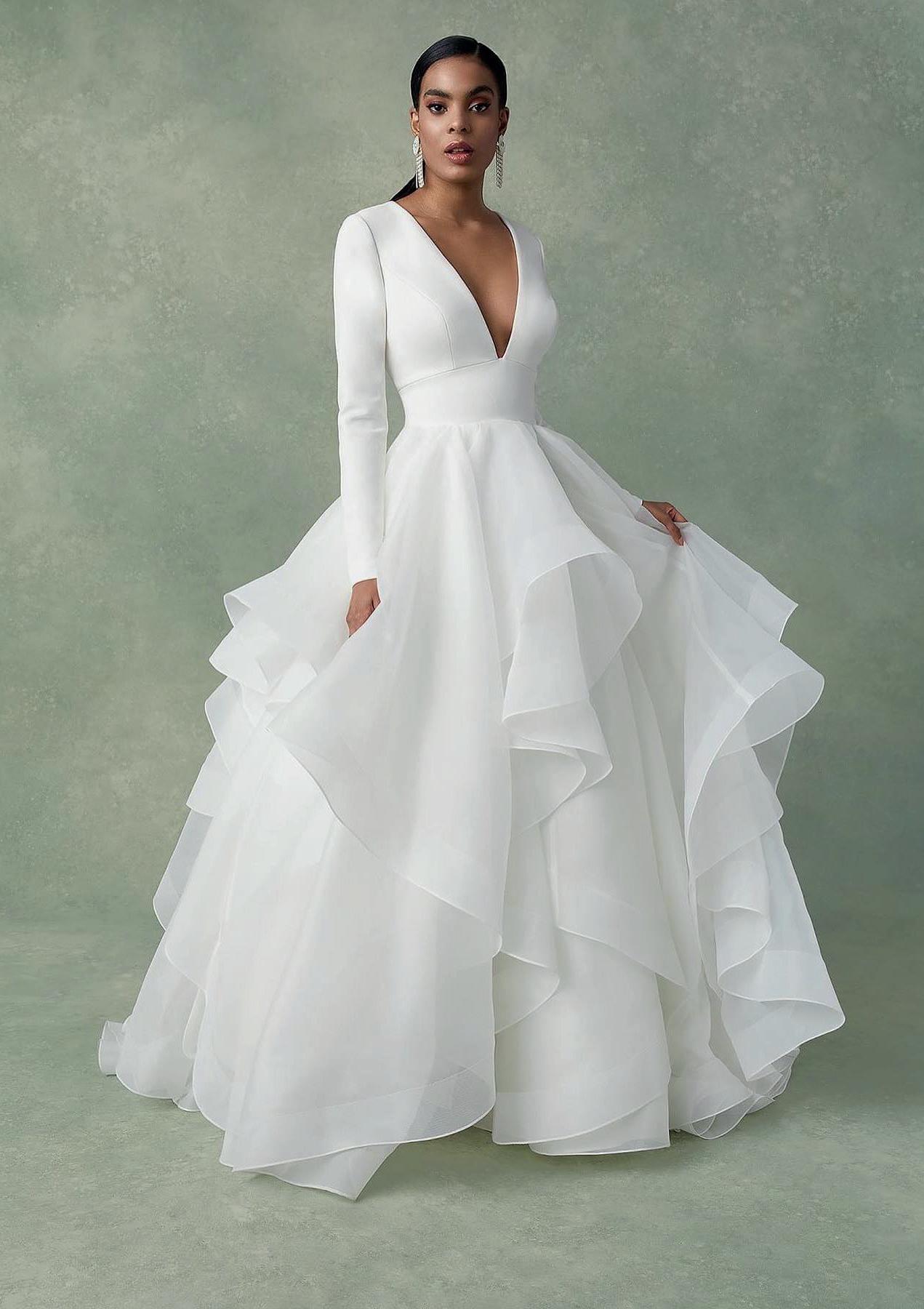 This season’s bridal dresses enjoy tiers of ruffled tulle, silky satin layers and subtle pleats