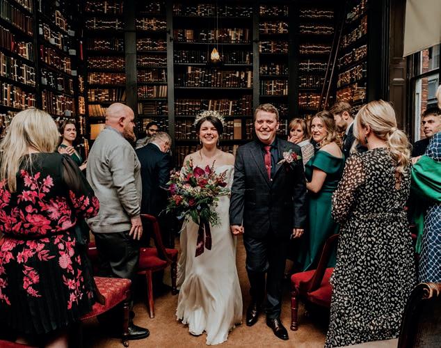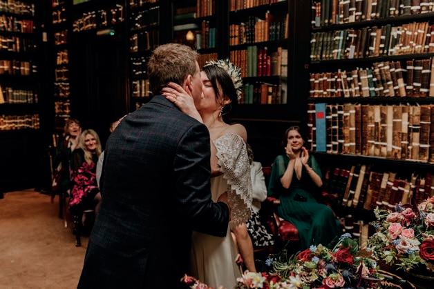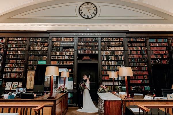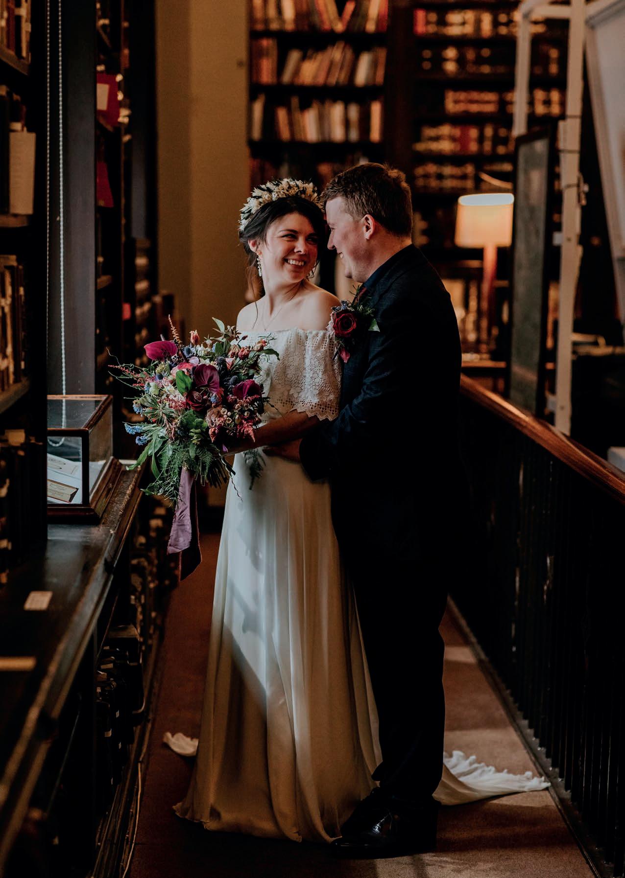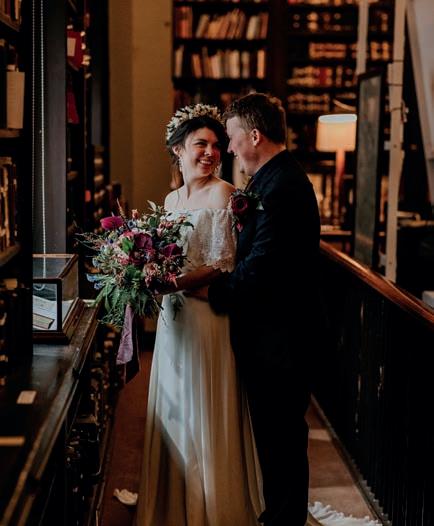 Jodie and Matt met at university and incorporated their love of literature into their big-day celebration at The Portico Library