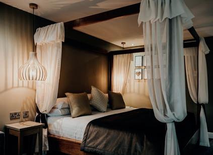 If a secluded, rustic, woodland escape is more your vibe the Shepherd’s Hut Suite is the place for you. Nestled in Galgorm Wood with the cascading River running alongside it, it’s luxuriously appointed with a lounge, mini kitchen, and bathroom with shower room and free-standing bath. But the stand-out features, without doubt, are your very own sauna and hot tub on the terrace. Enjoy a soak in the warm waters as you watch the sun set and raise a glass to yourselves, the newlyweds.