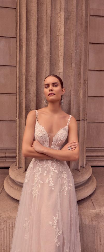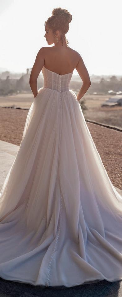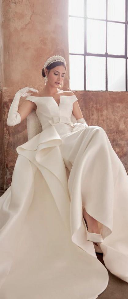 This season’s bridal dresses enjoy tiers of ruffled tulle, silky satin layers and subtle pleats