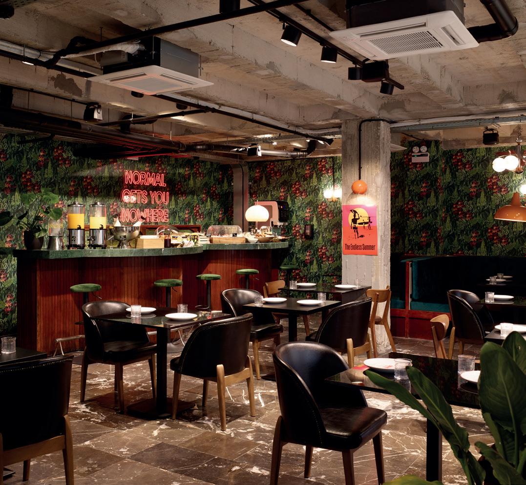 The property opened its doors in July 2022 and breathes a fresh, young energy into the recently transformed Omonia Square. Set just a stone’s throw away from its sister property, Brown Acropol, the 87-room boutique hotel features the brand’s distinguishable, punchy décor, with an industrial-style interior and fiery red branding.