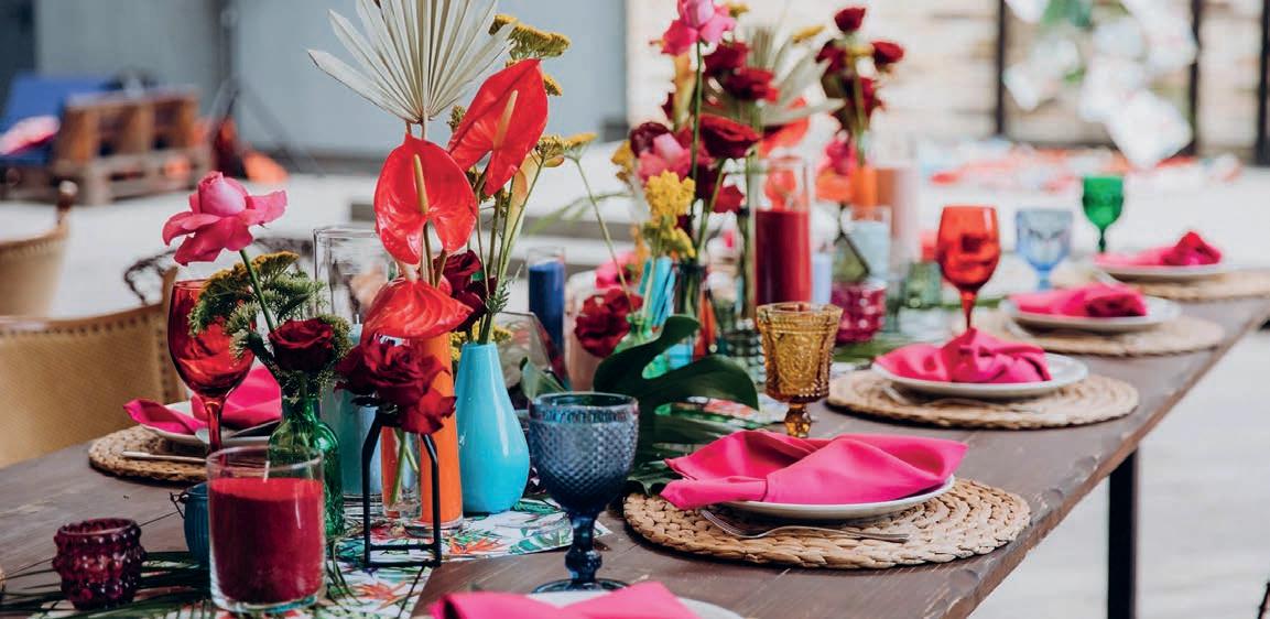 Pampas grass is still having a moment thanks to its versatility. Here, it’s showcased alongside pops of opulent burgundy and rust