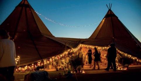 FIREFLOWER TIPIS, STOW-ON-THE-WOLD, GLOUCESTERSHIRE (NATIONWIDE HIRE) These magical tipis offer a rustic charm and blank canvas for yearround weddings. Summer celebrations can make the most of the great outdoors with garden games, al fresco drinks, hay bales and firepits. During the colder months, the interior of the tipis looks cosy dressed with fairylights, sheepskin rugs and blankets.