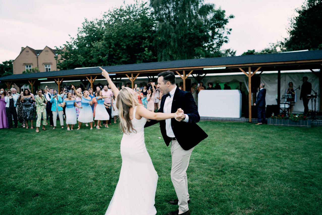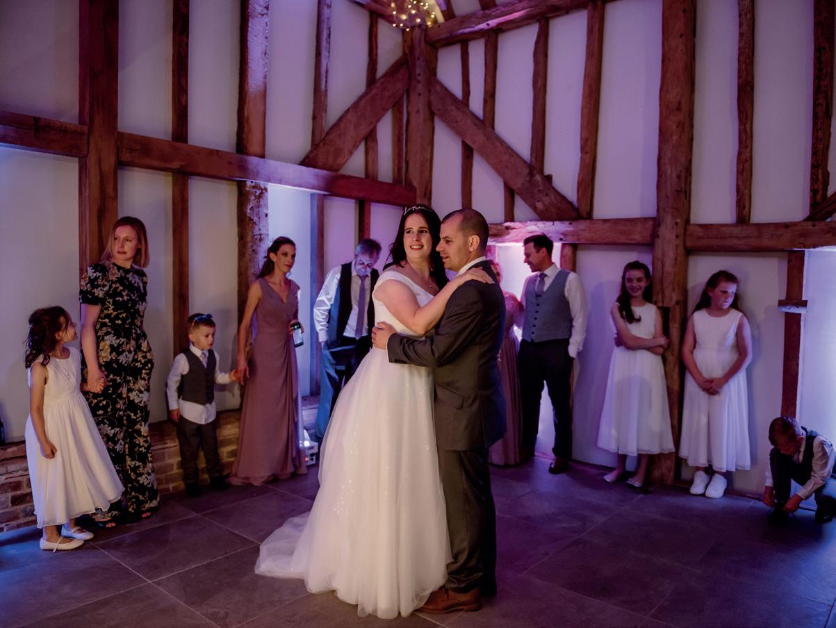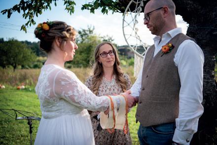 Dave and I knew we wanted a band for our evening reception thatwould get everyone up and dancing. We booked an amazing trio wholearnt our first dance song and incorporated some of our favouritetunes into their set list. We were a bit worried that people would getbored or restless throughout the day, but all of our guests were quitecontent chatting during the drinks reception, and I’m quite glad wekept things scaled back as it allowed us to catch up with friends andfamily who we hadn’t seen in a long time due to the pandemic.