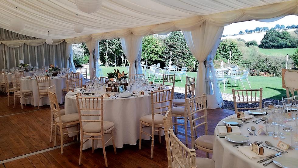 Ceremonies with up to 70 guests are hosted in the garden and Garden Marquee, the most popular spot for weddings here.