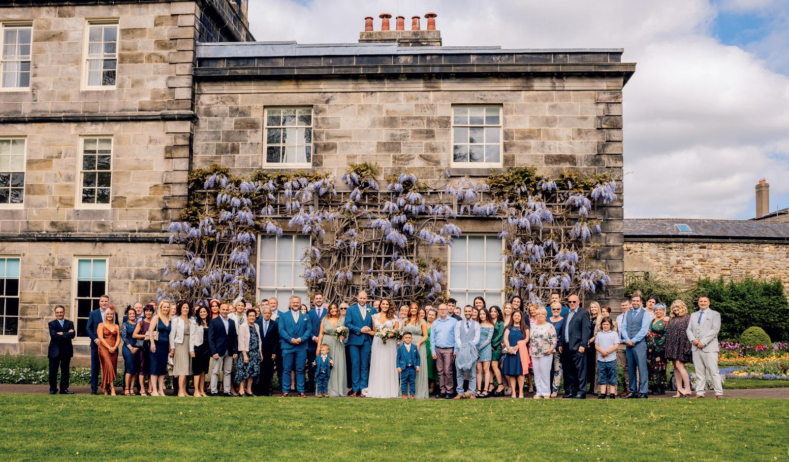 floor-to-ceiling windows, and with views over the grounds and countryside. You can also choose to say your vows under the arched ceiling of the Foyer; a striking setting with wood panelled walls for up to 70. The President’s Lounge is a beautiful location for intimate ceremonies from two to 40 guests, and there’s even the option to wed in two outdoor locations, framed by the architecture of the hall and its historic grounds.