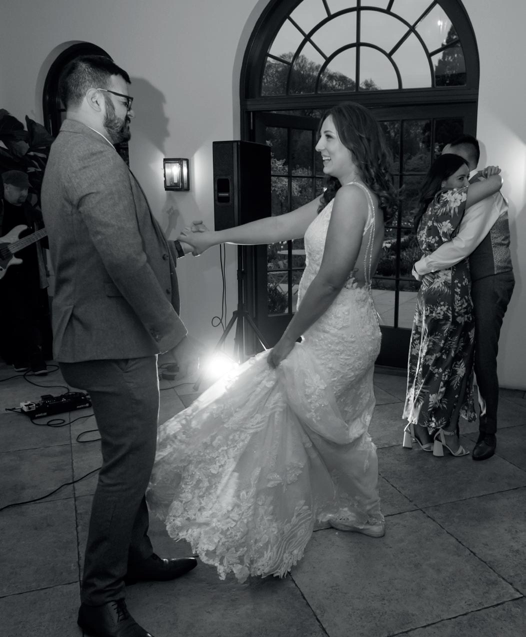 Dave and I knew we wanted a band for our evening reception thatwould get everyone up and dancing. We booked an amazing trio wholearnt our first dance song and incorporated some of our favouritetunes into their set list. We were a bit worried that people would getbored or restless throughout the day, but all of our guests were quitecontent chatting during the drinks reception, and I’m quite glad wekept things scaled back as it allowed us to catch up with friends andfamily who we hadn’t seen in a long time due to the pandemic.