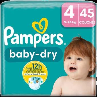 Au choix: Pampers Baby dry T4x45, T2x58, T3x52, T4+x40, T5x39, T5+x36, T6x34, T6+x32, T7x31 ou T8x28. Par 3 : 30,36 € au lieu de 45,54 €. Également disponible au même prix en variétés Baby dry night pants en T4x40, T5x35, T6x30, en Baby dry pants T4x42, T5x37, T6x32, T7x29, T8x26, en Premium protection T2x54, T3x46, T4x39, T5x34,T6x30, en Premium protection pants T4x31, T5x29, T6x27, en Harmonie T2x48, T3x42, T4x36, T5x31, T6x27 ou en Harmonie pants T4x32, T5x27, T6x24.