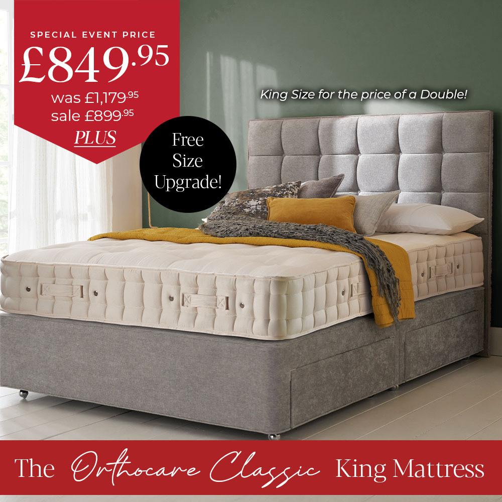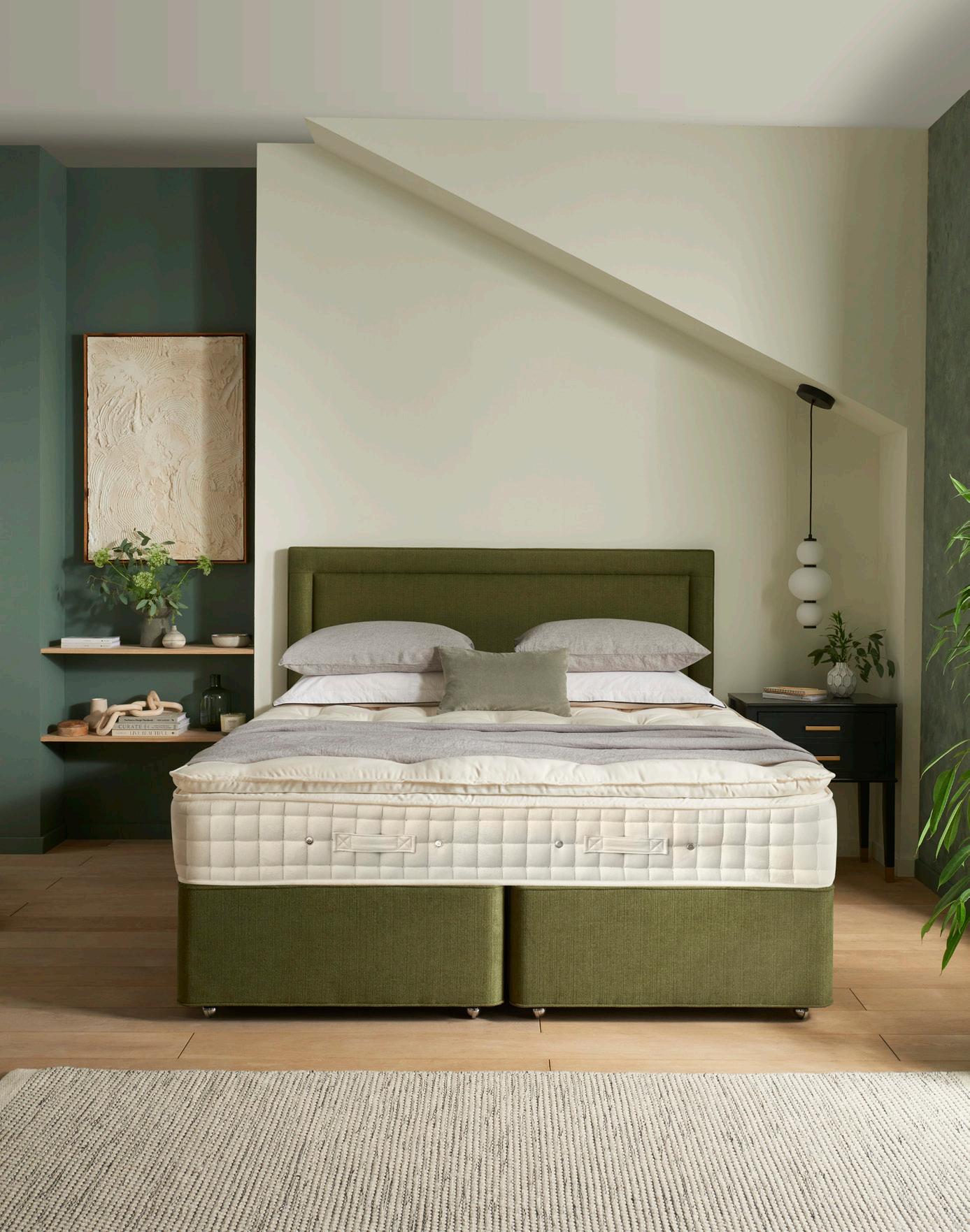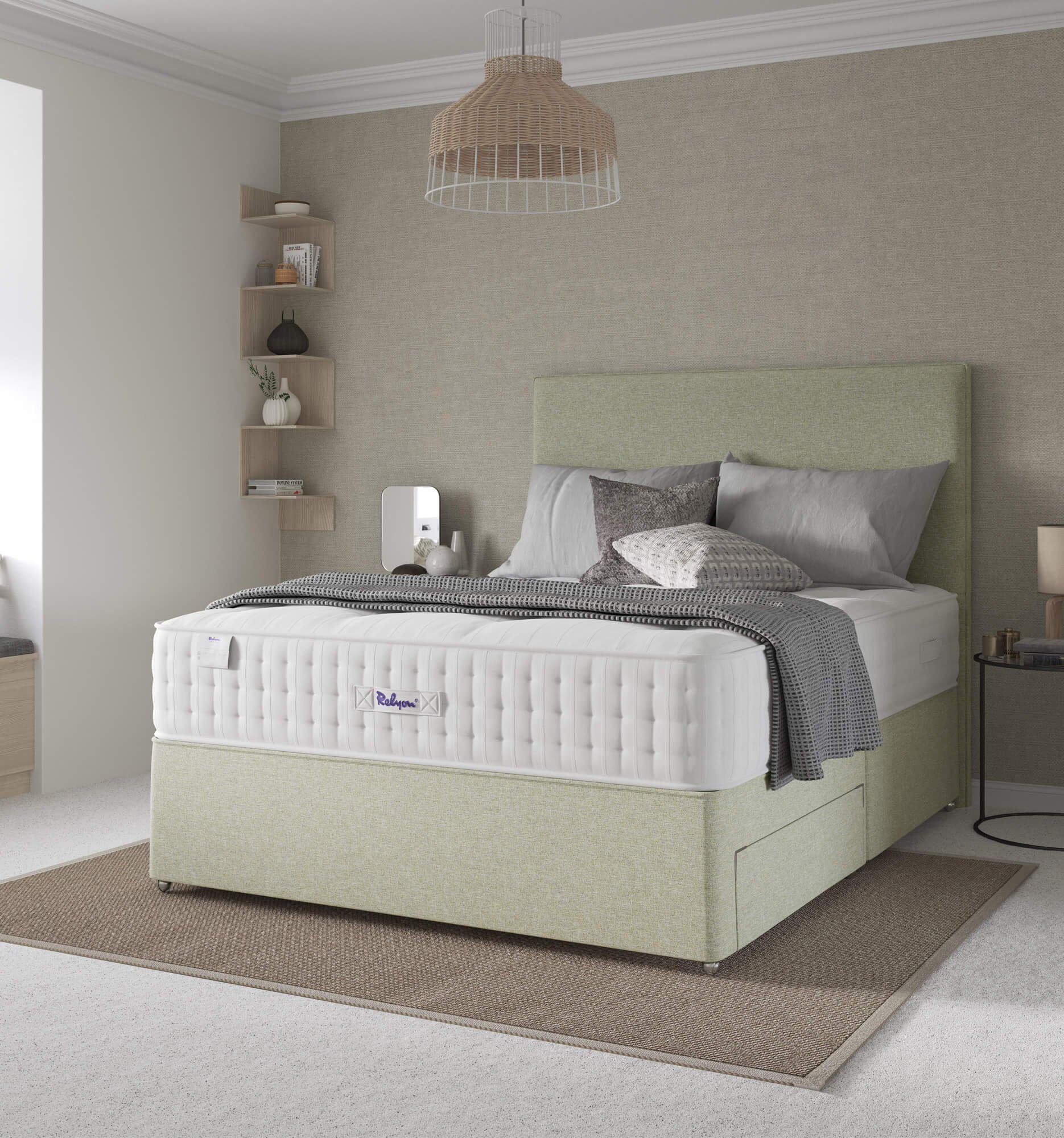 Kornö Superking Divan Set Including Prestige Mattress Topper in Classic Wool and Luxury Fabrics and Headboard
