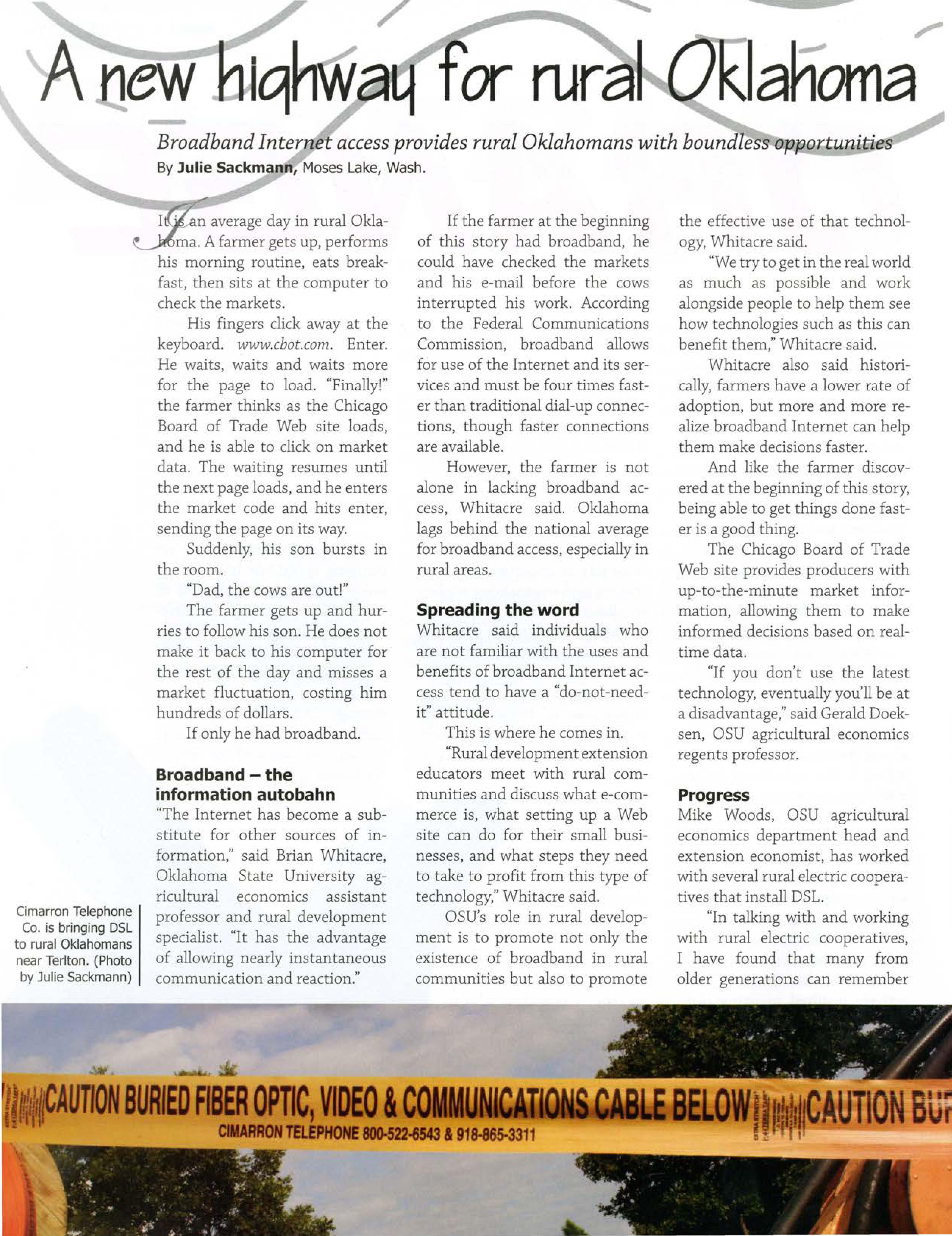 Broadband Internet access provides rural Oklahomans with boundless opportunities