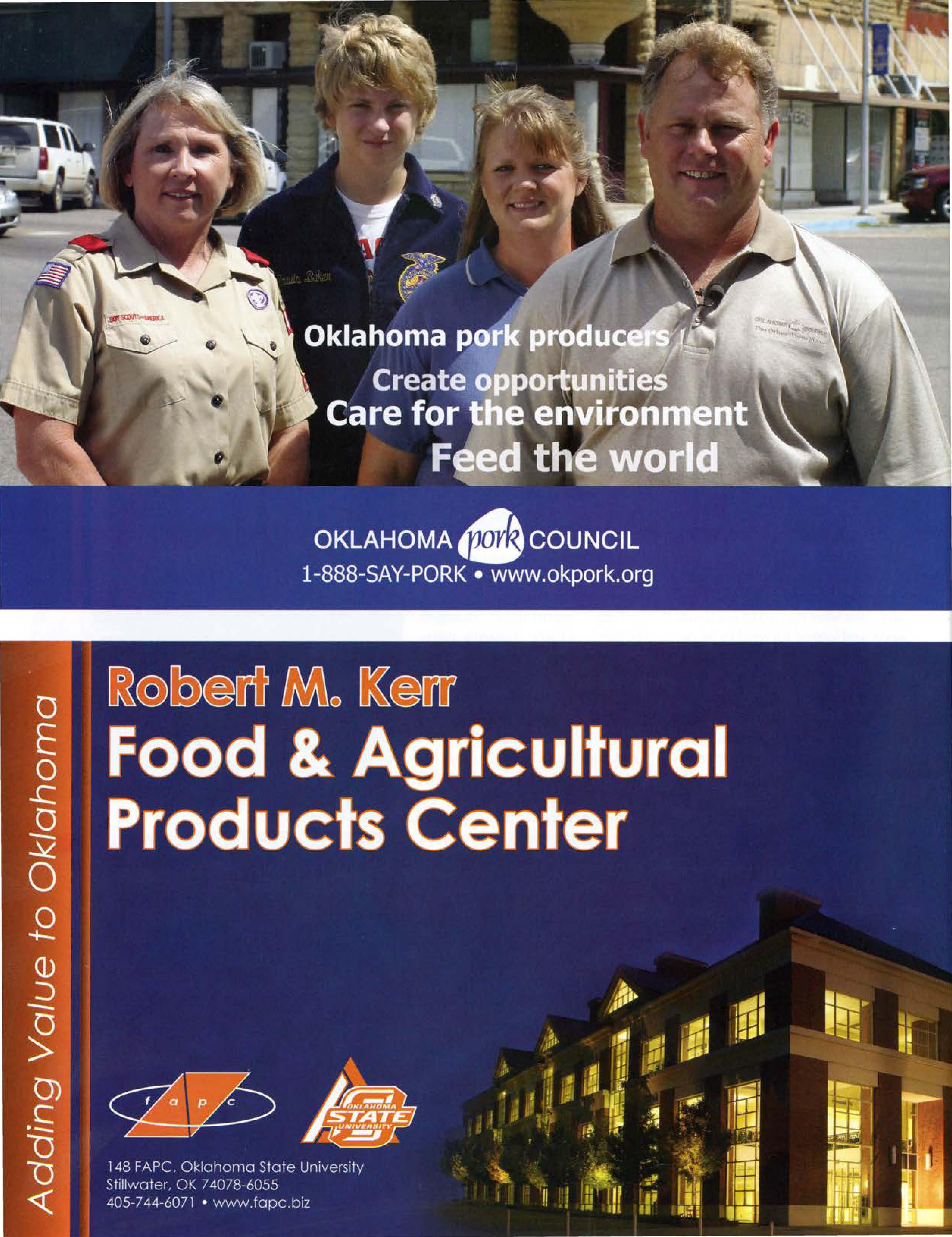 The Oklahoma Food and Agricultural Products Research and Technology Center on the Oklahoma State University campus celebrated its 10-year anniversary in July 2007 and renamed the facility the Robert M. Kerr Food and Agricul tural Products Center