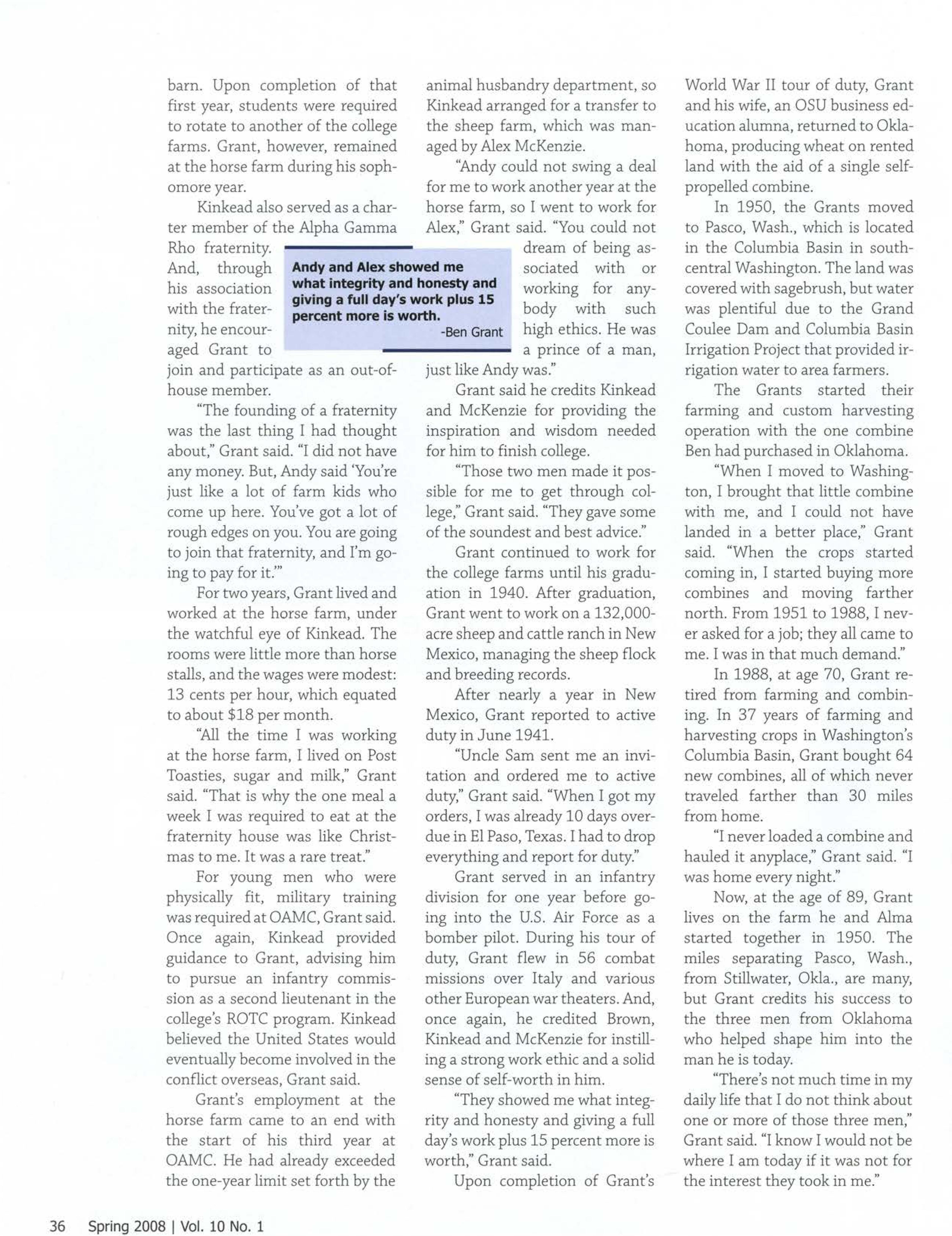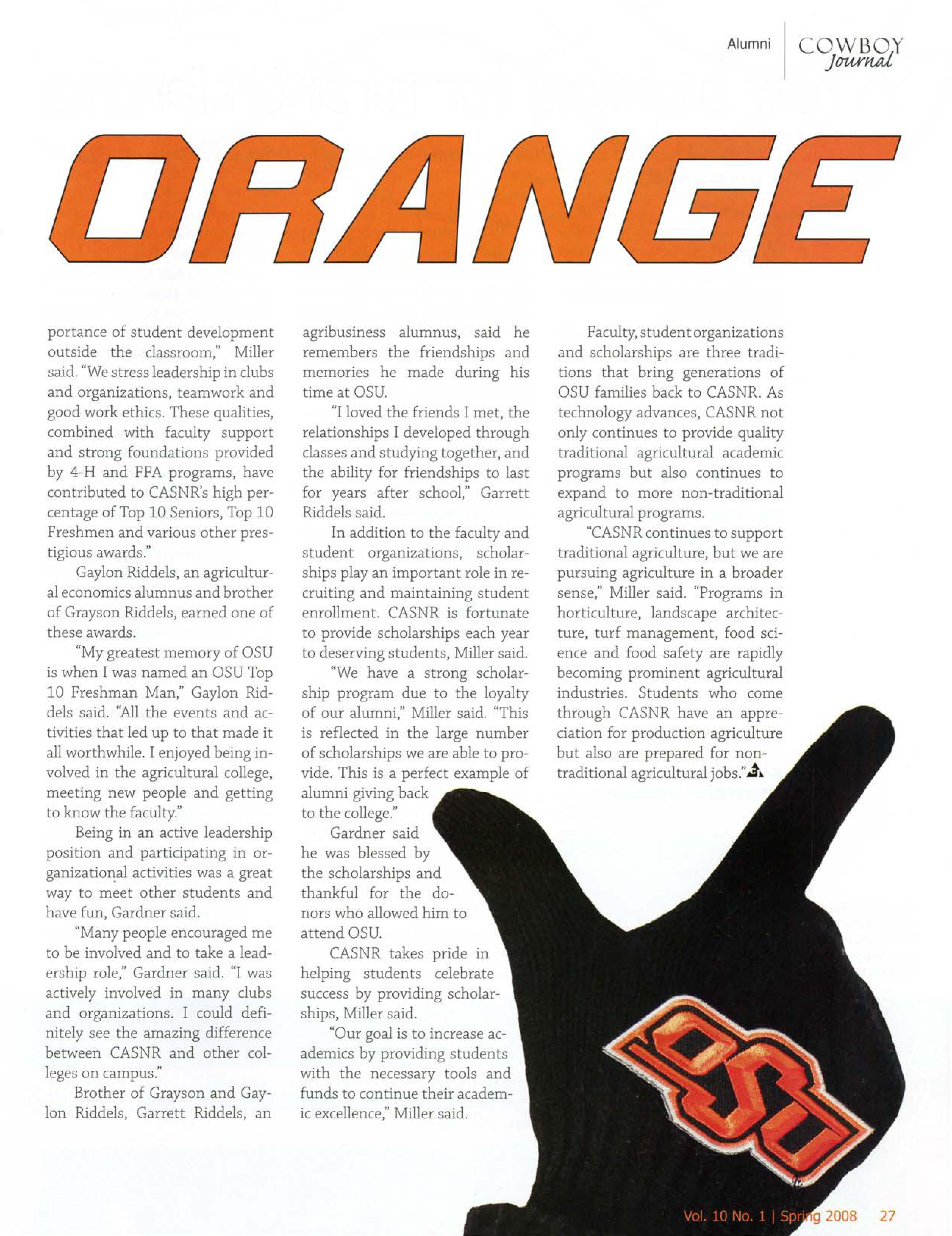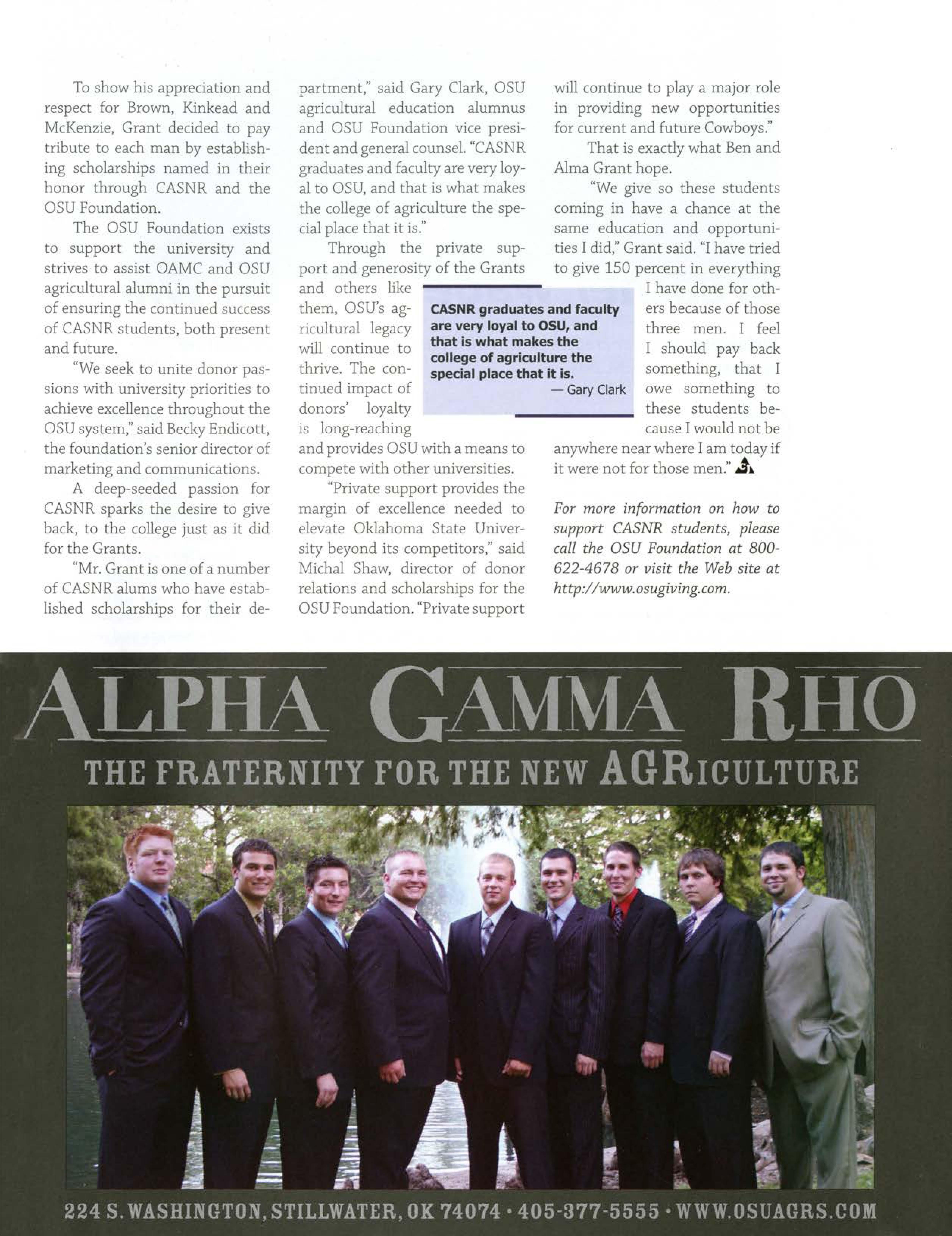 "He always had a strong belief in getting a good education and its opportunities," said Don Wagner former OSU animal science department head. "He is a genu ine giver to students, producers, agriculture and OSU.".t~