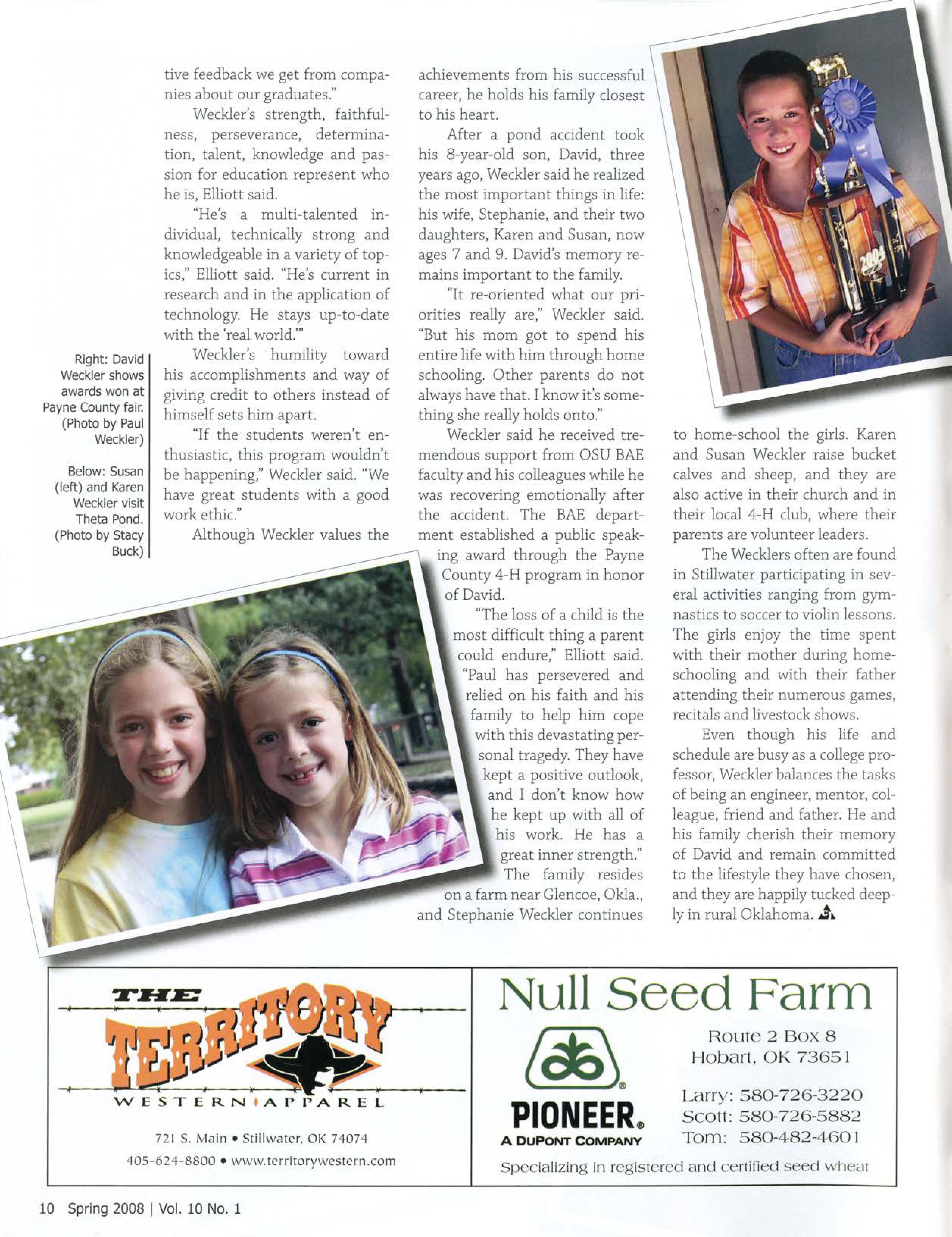 Interested in agriculture at a young age, Wecl<lersaid he enjoyed visiting his grandparents' farm and first rode in a combine at age four. With his mother a leader in 4-H, his involvement in the program as a child - along wi h his experience showing cattle, sheep and swine at local fairs - helped shape him into the agriculturist he is today.