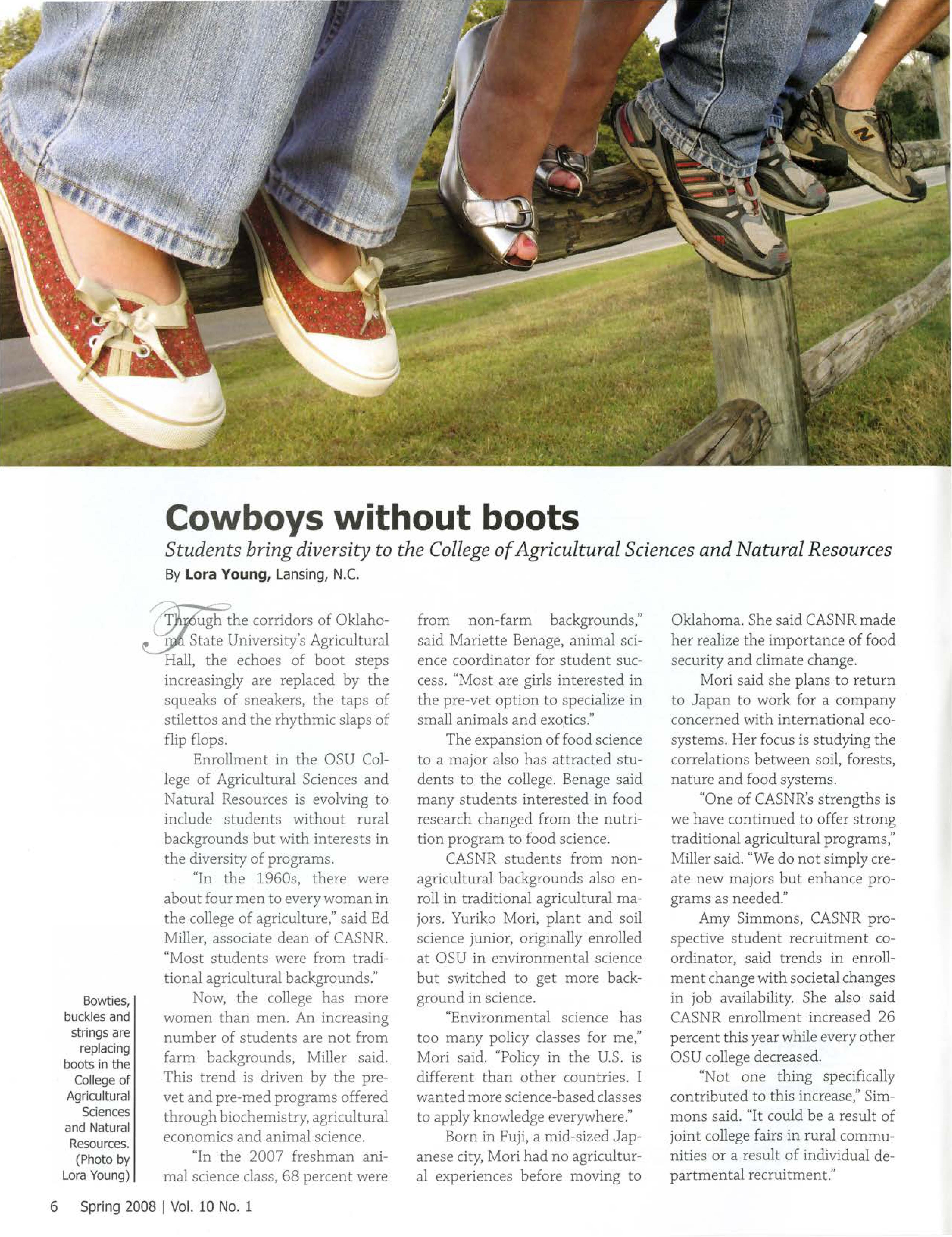 ugh the corridors of OklahoState University's Agricultural Hall, the echoes of boot steps increasingly are replaced by the squeaks of sneakers, the taps of stilettos and the rhythmic slaps of flip flops.