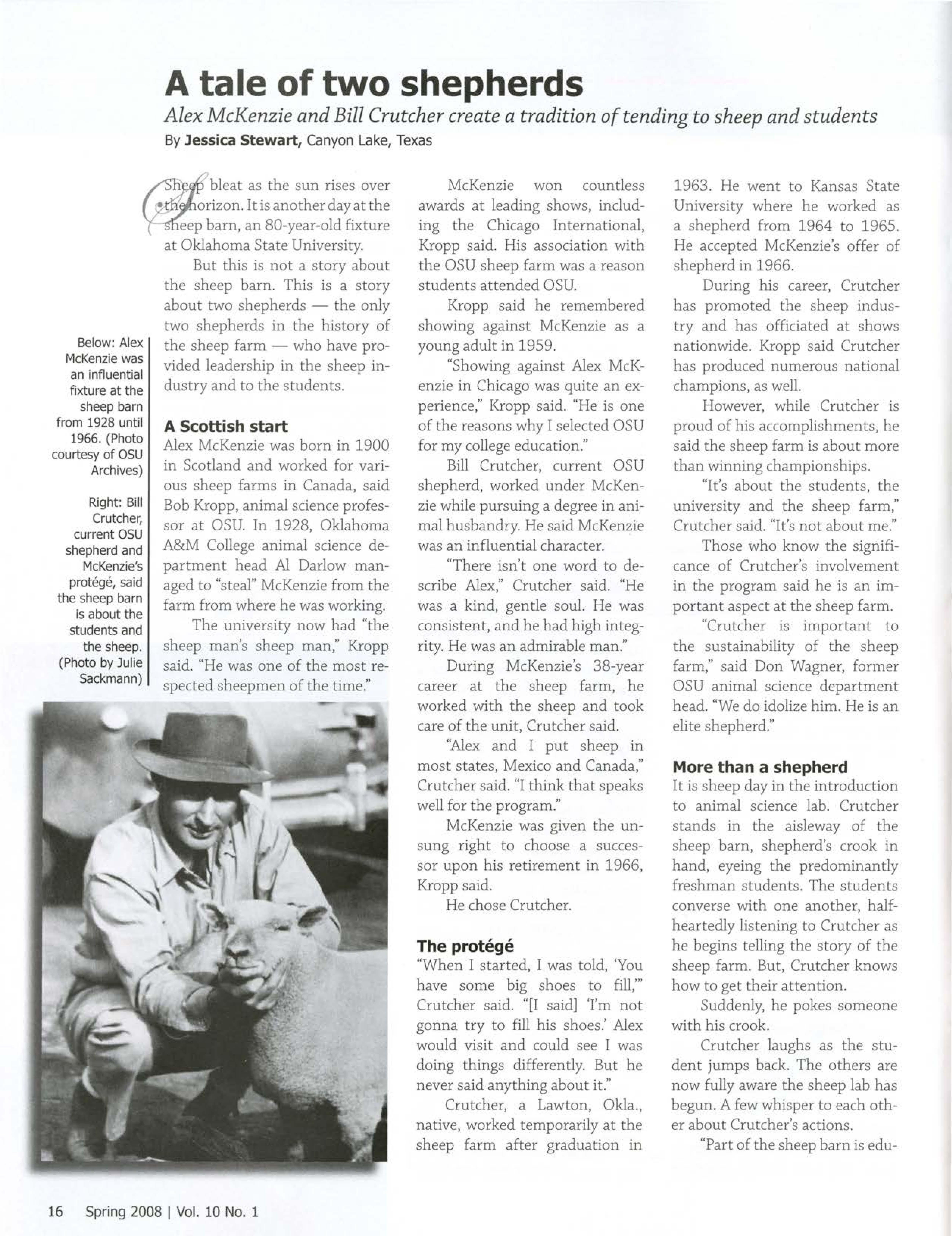 Alex McKenzie and Bill Crutcher create a tradition of tending to sheep and students