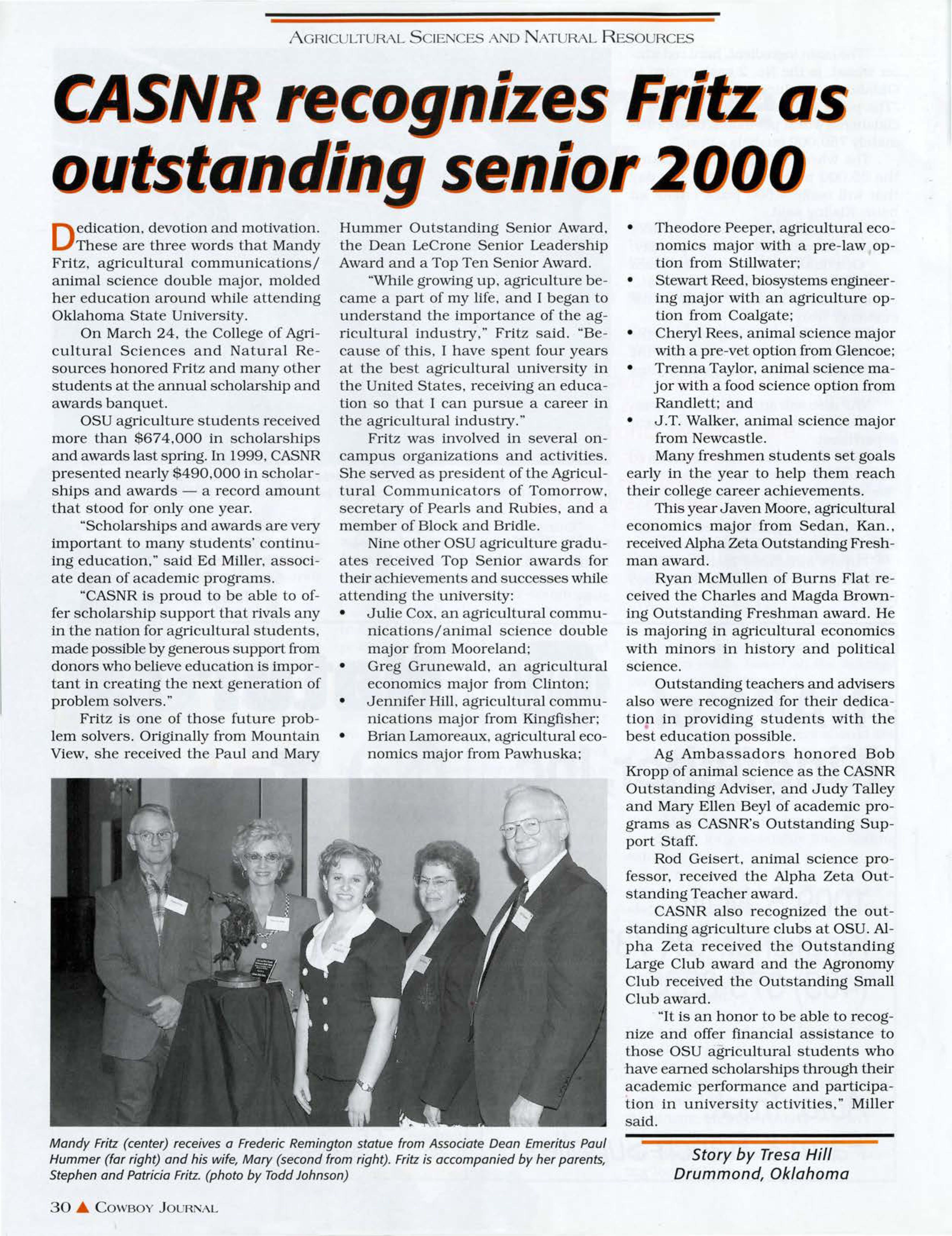 CASNR recognizes Fritz as outstanding senior College honor its top cholars and leader during th spring banquet