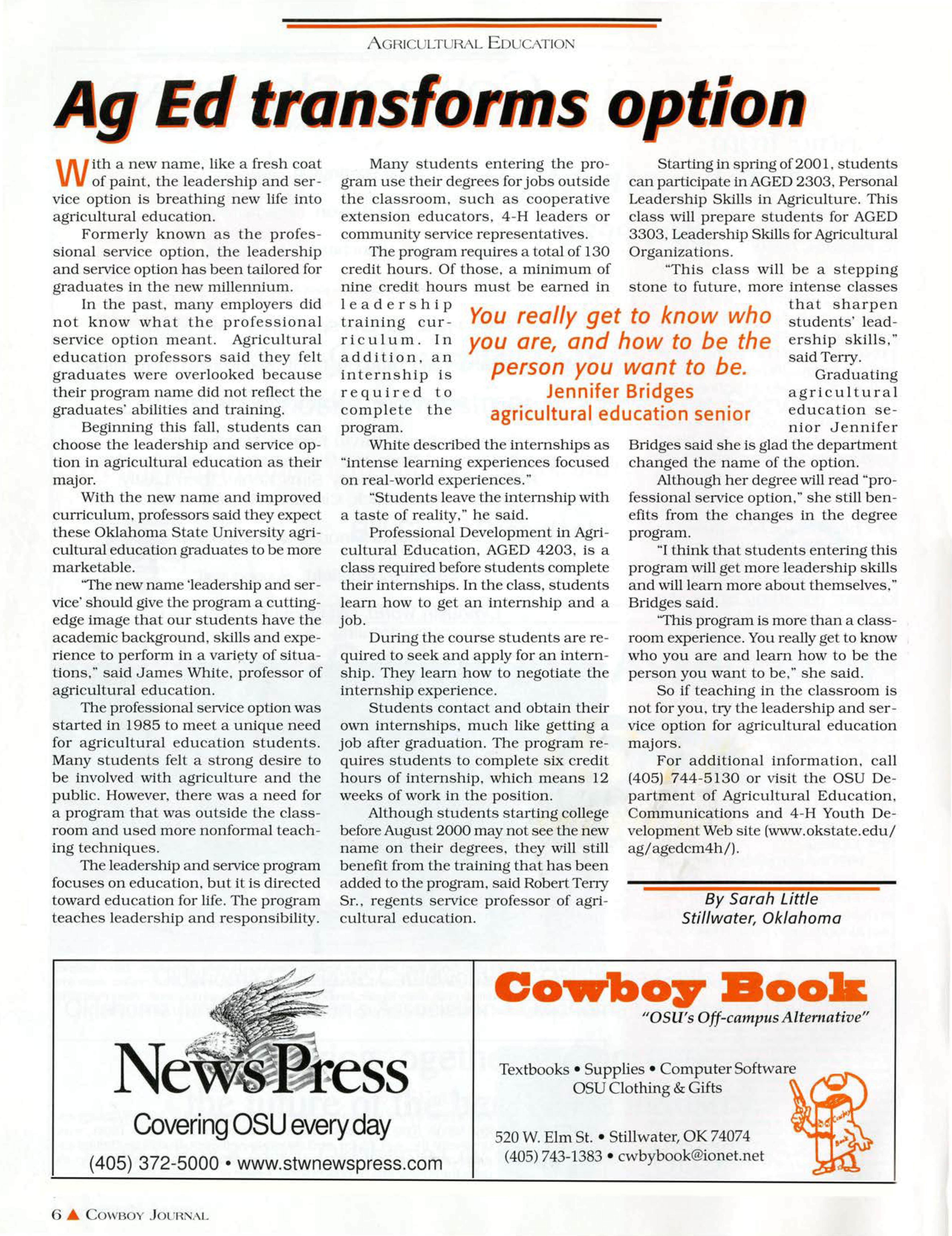 With the new name and improved curriculum. professors said they expect th se Oklahoma Stat University agricultural ducation graduat s to be mor marketable.