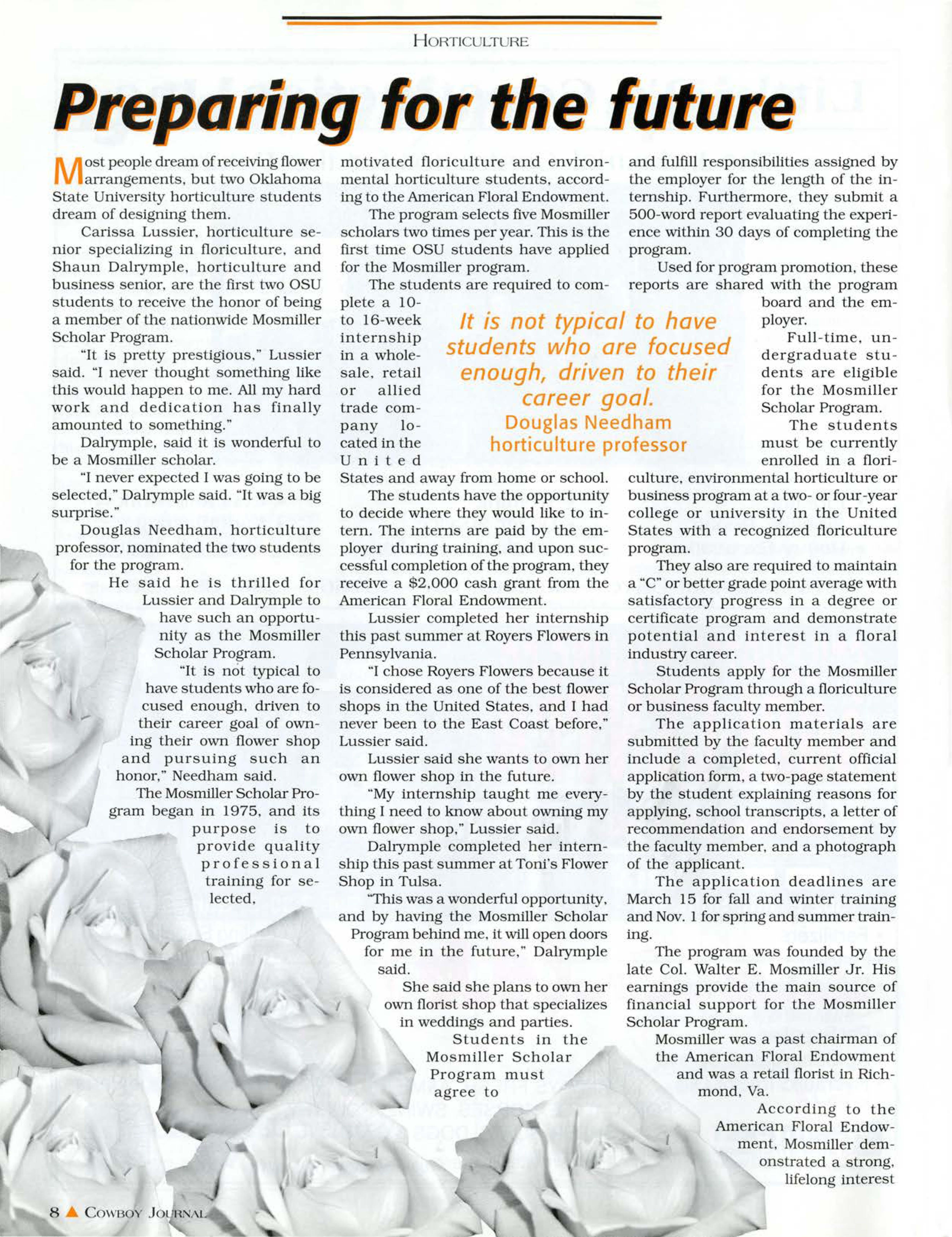 1\vo OSU horticulture students complete the Mosmiller Scholar Program