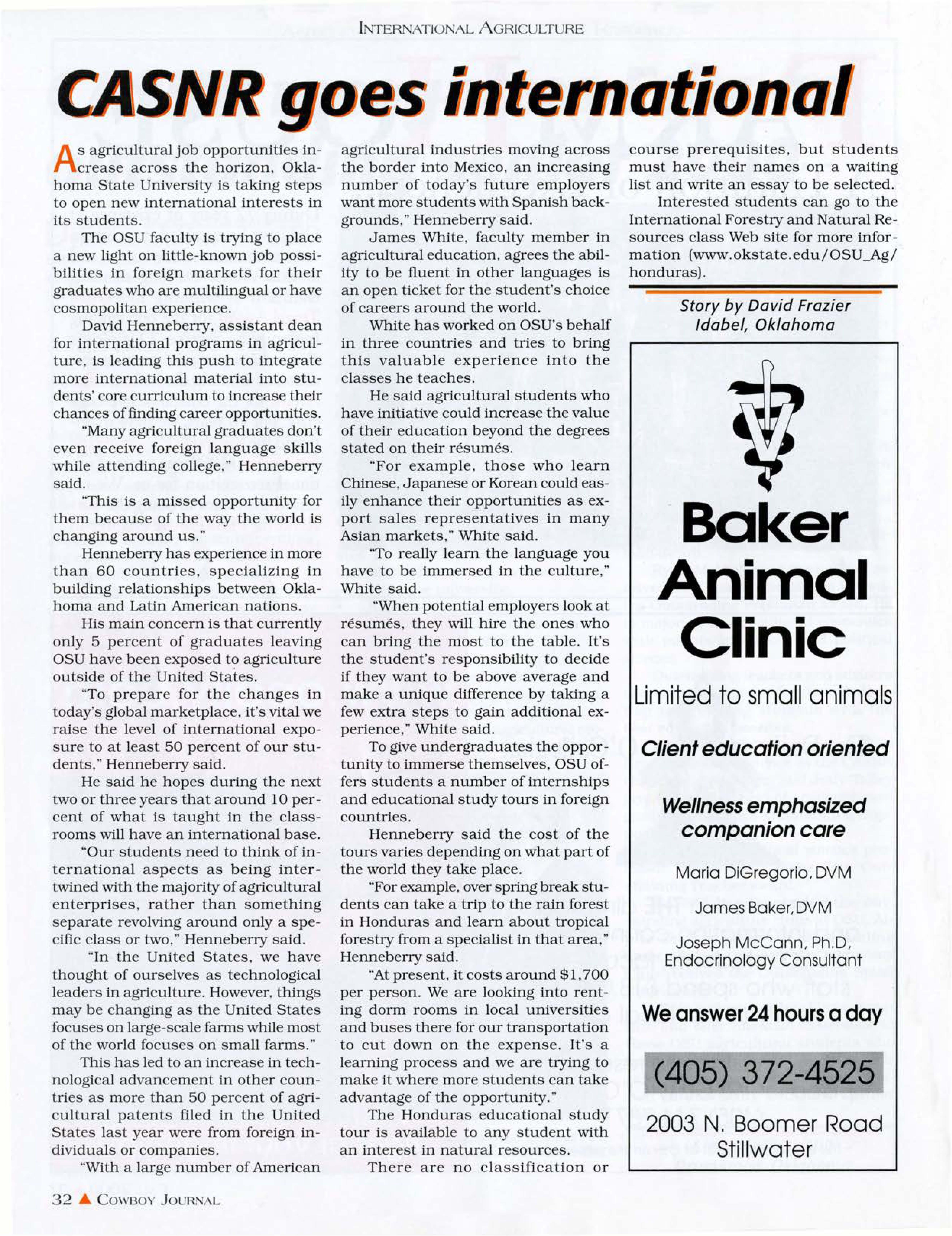 "Our students need to think of international aspects as being intertwined with the majority of agricultural enterprises. rath r than something separate revolving around only a specific class or two ., Henneberry said.