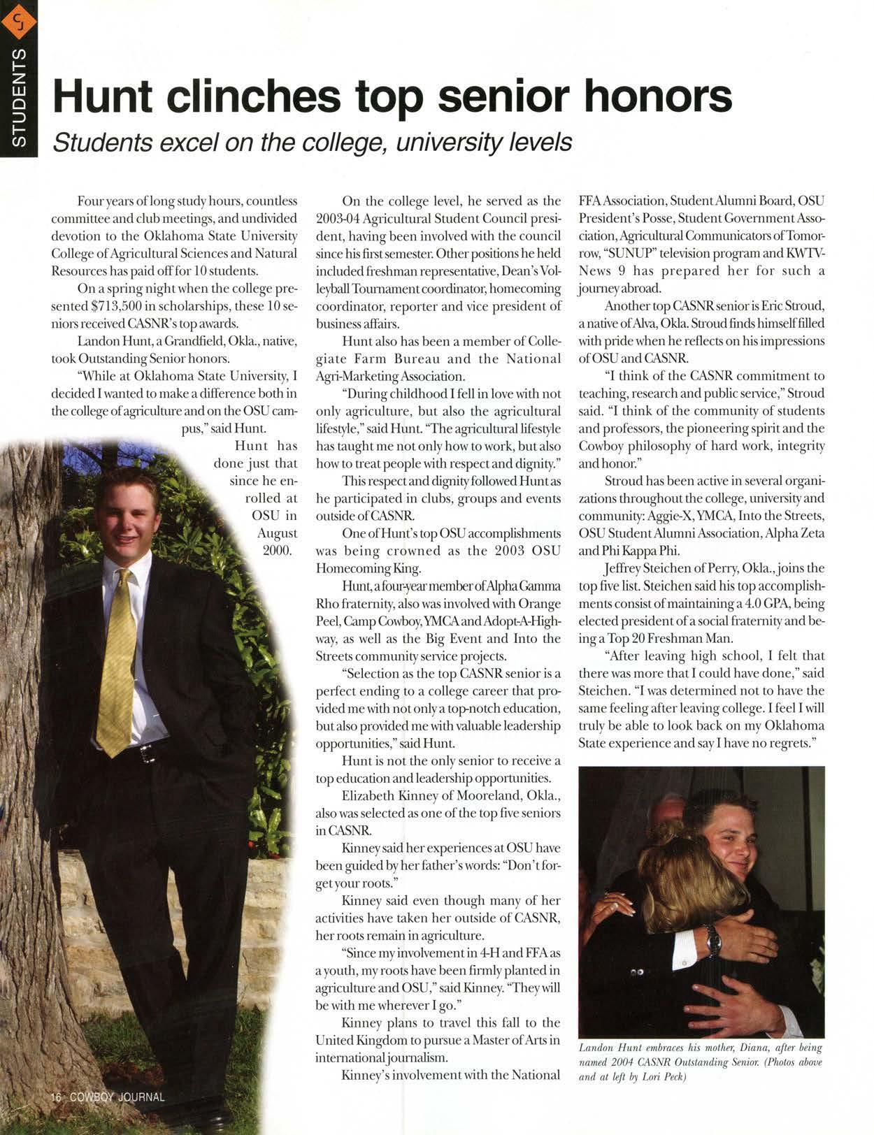 Curl ren1rnedto TexasTech at lhe end of his intemship 11~lh a great appreciation for his timeatOSU.