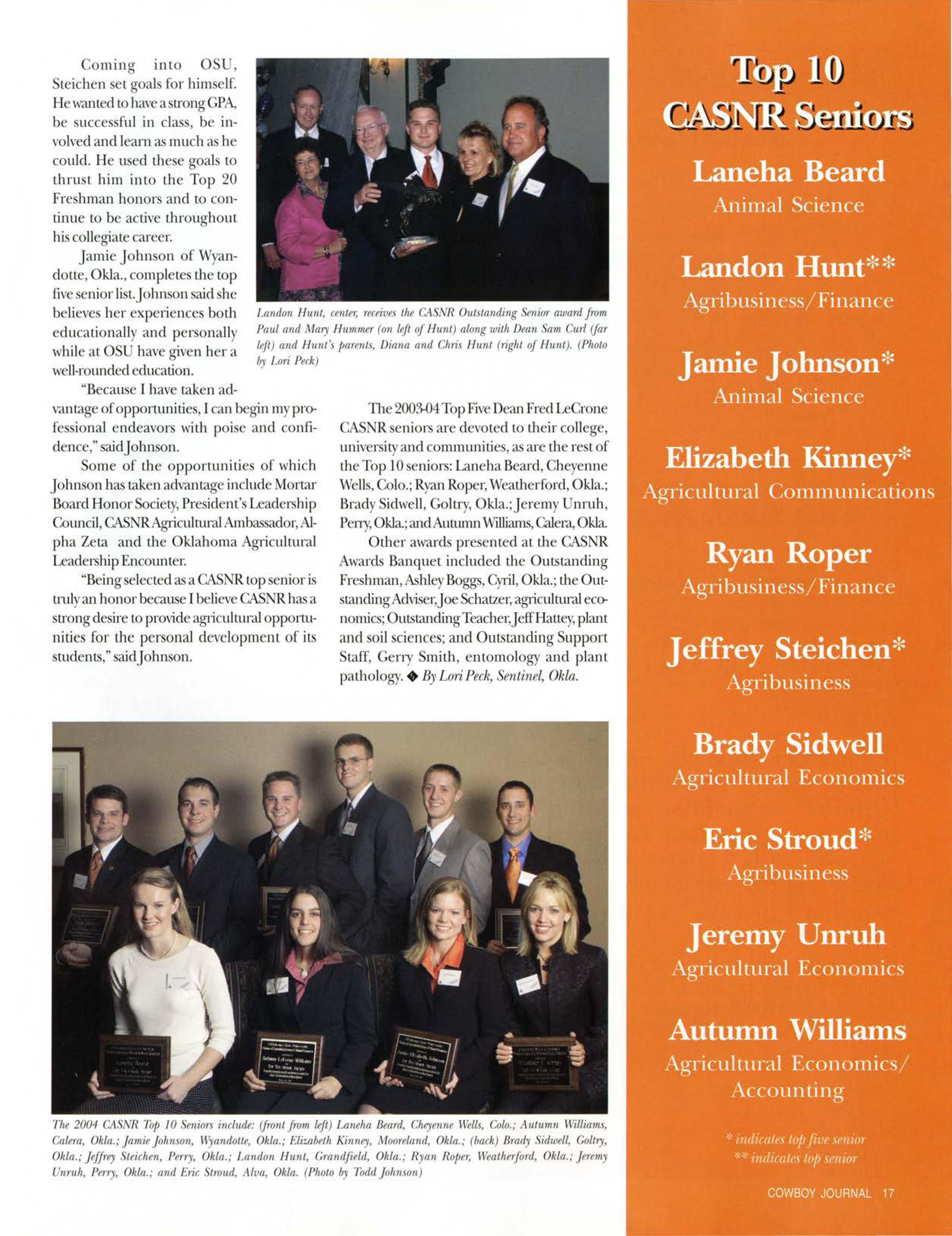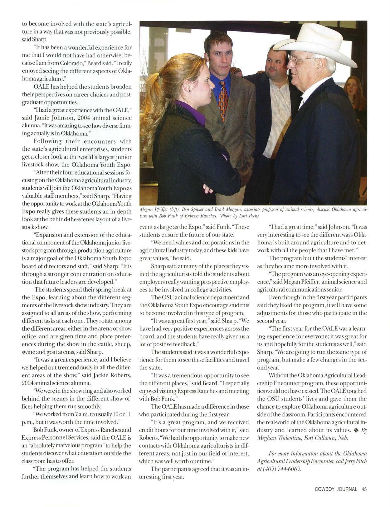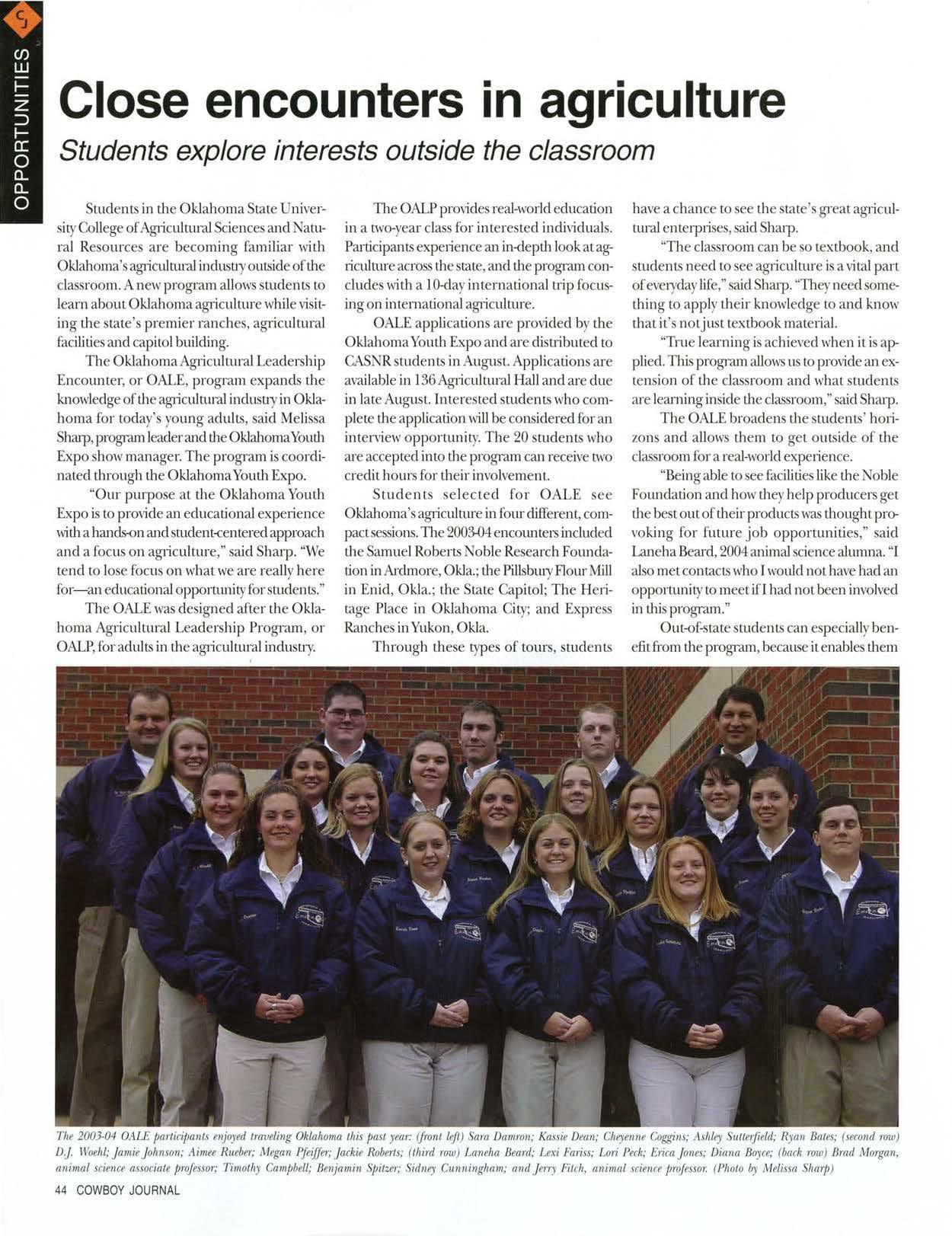 "I had a greatexpe1iencewiththe OALE,'. said Jamie Johnson, 2004 animal science alumna."ltwasamazingto see howdiversefanning actuallyisin Oklahoma."