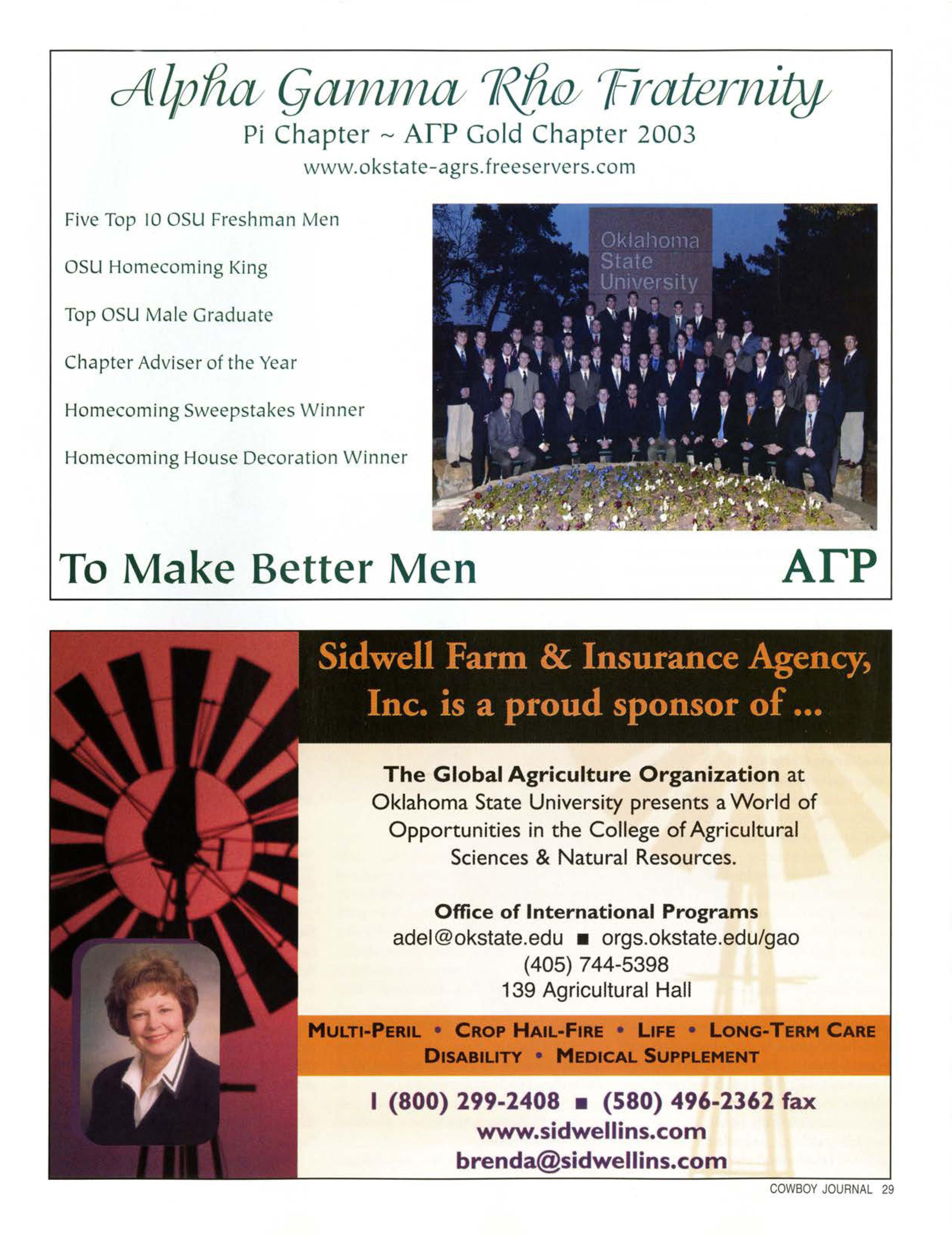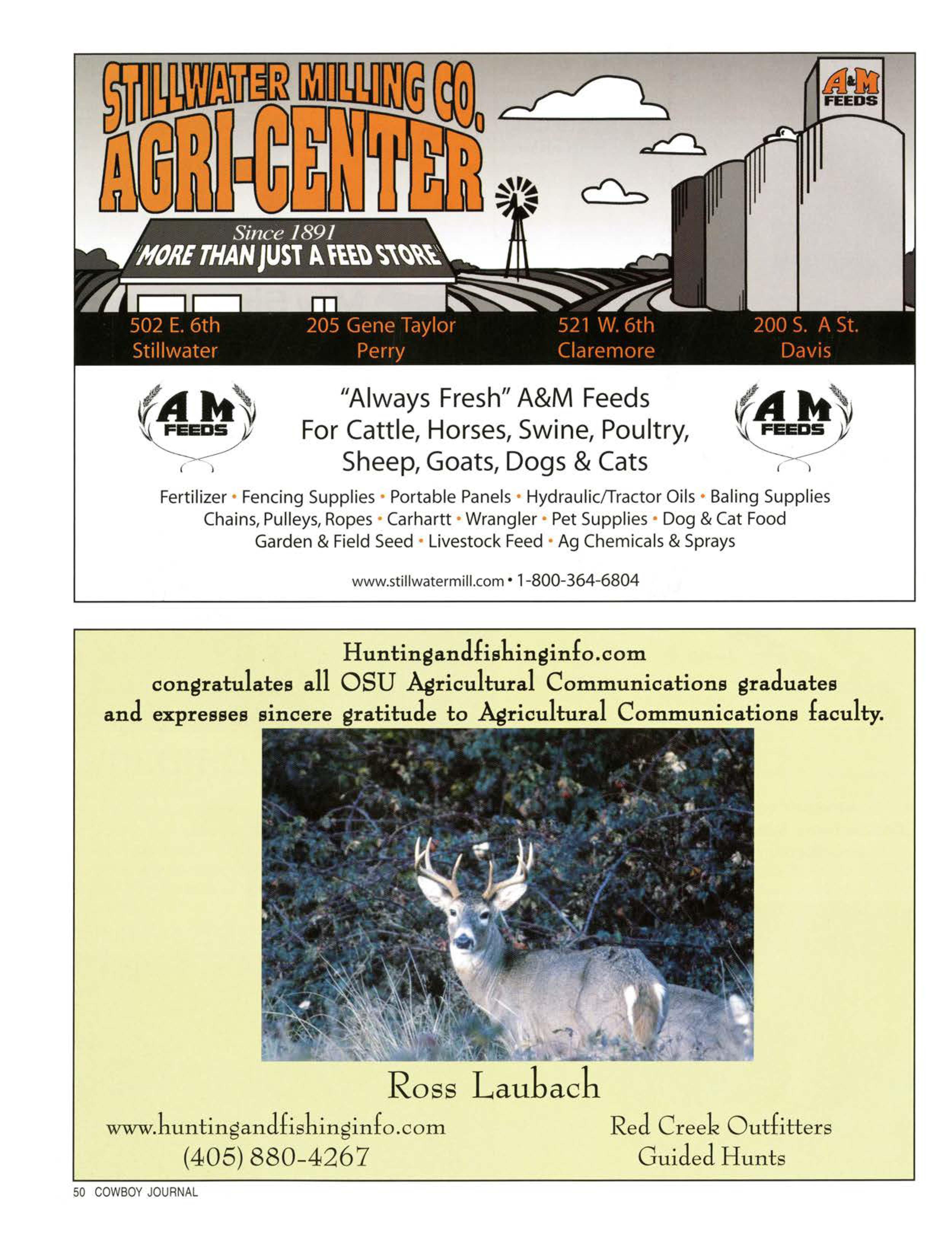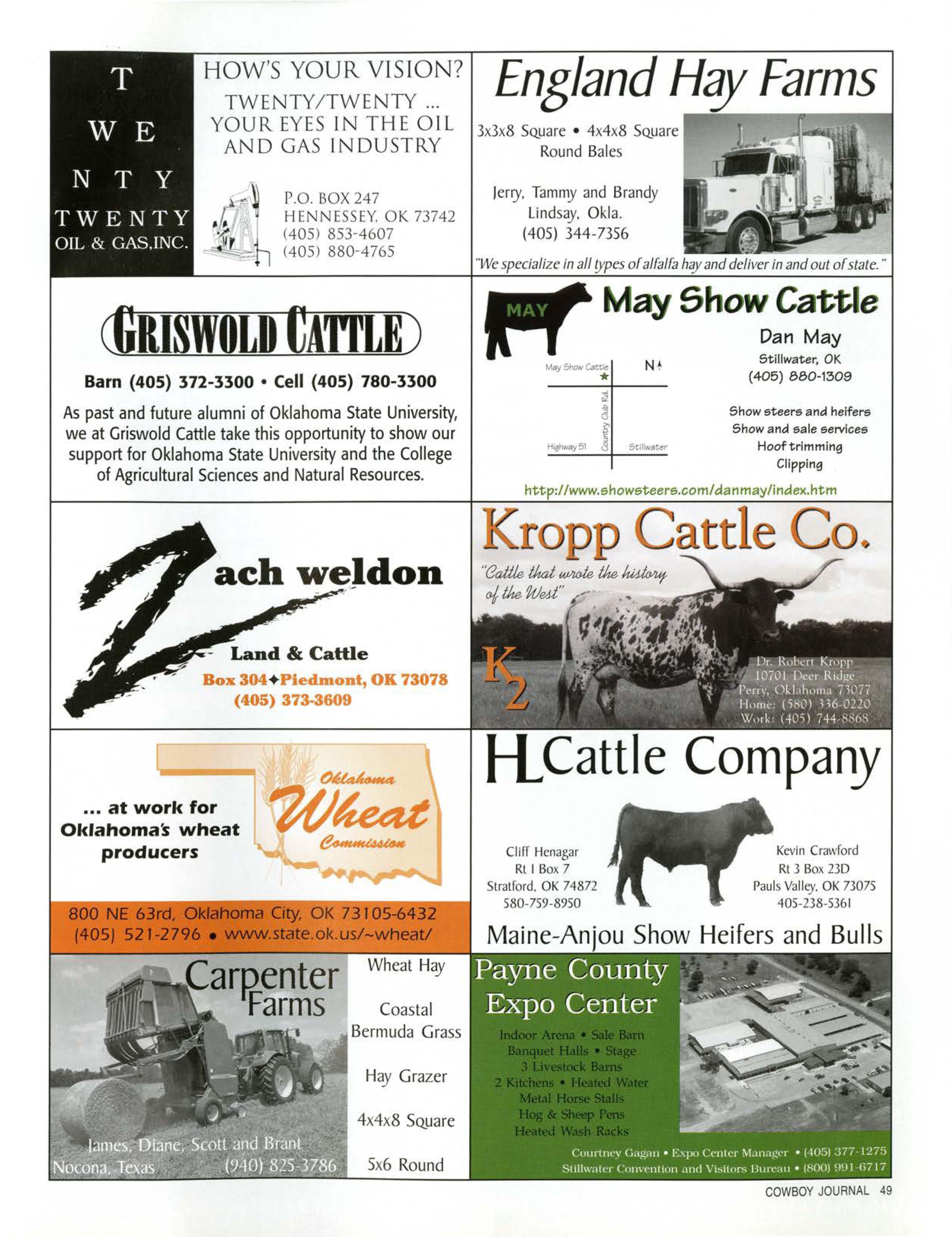 As past and future alumni of OklahomaStateUniversity, we at GriswoldCattletake this opportunityto show our supportfor OklahomaStateUniversityand the College of AgriculturalSciencesand NaturalResources.