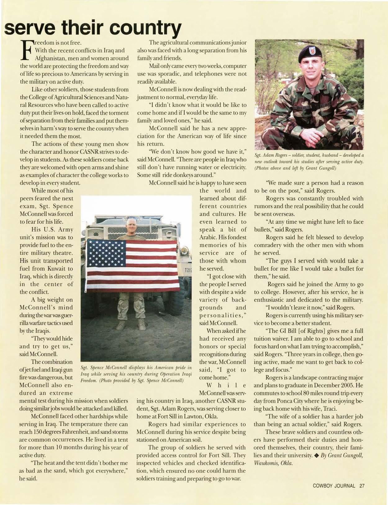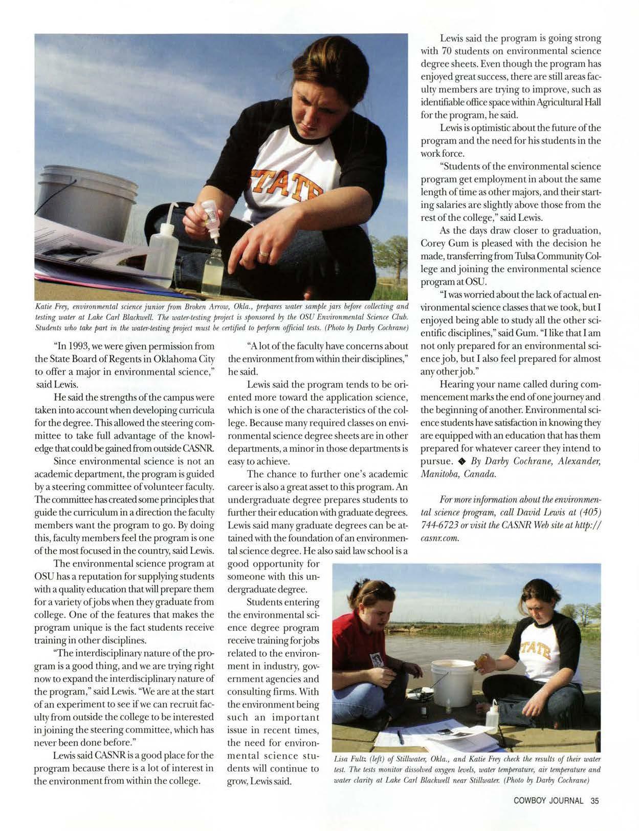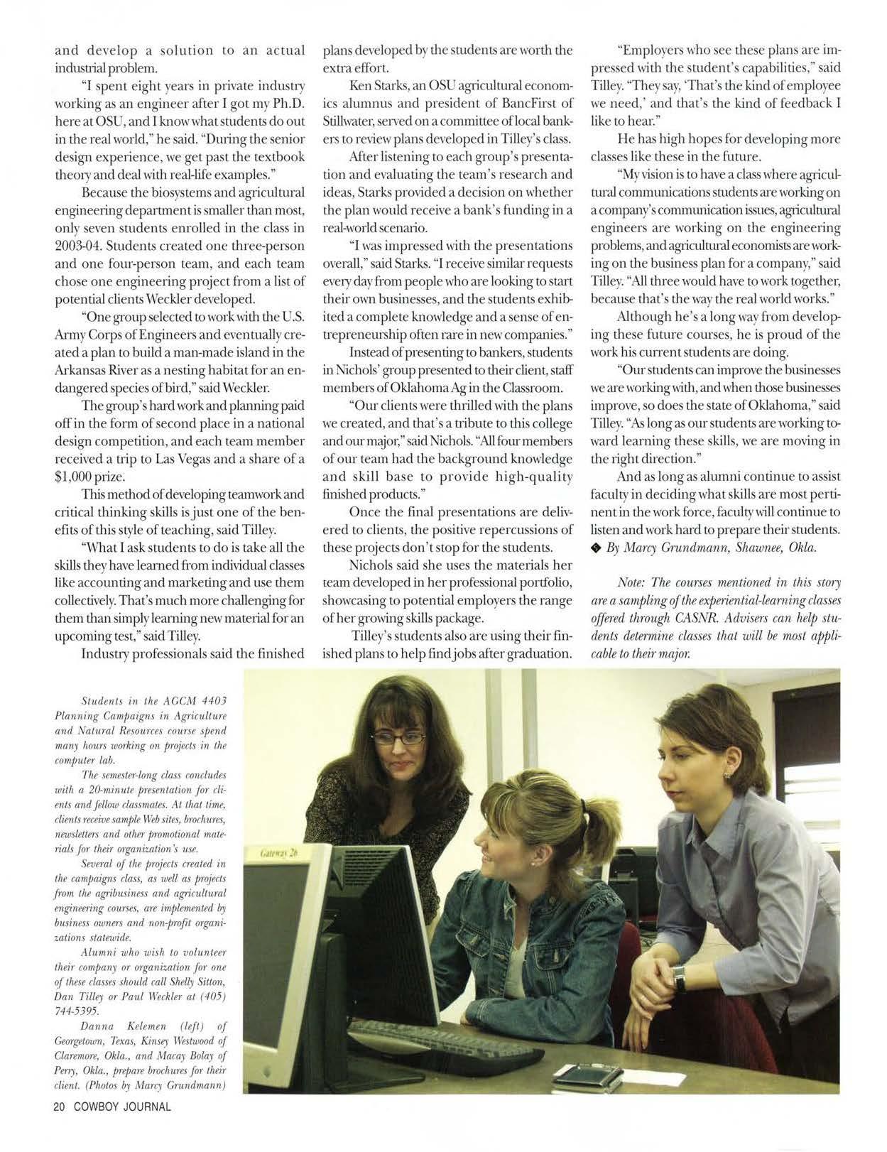 ·'It's a great program, and we received credit hours for our time involvedwithit,"said Roberts."Wehad d1eopport1mityto make new contacts witJiOklahoma ag1icultrnistSin different areas, notjusl in our field of interest, which waswellworth our time.•,