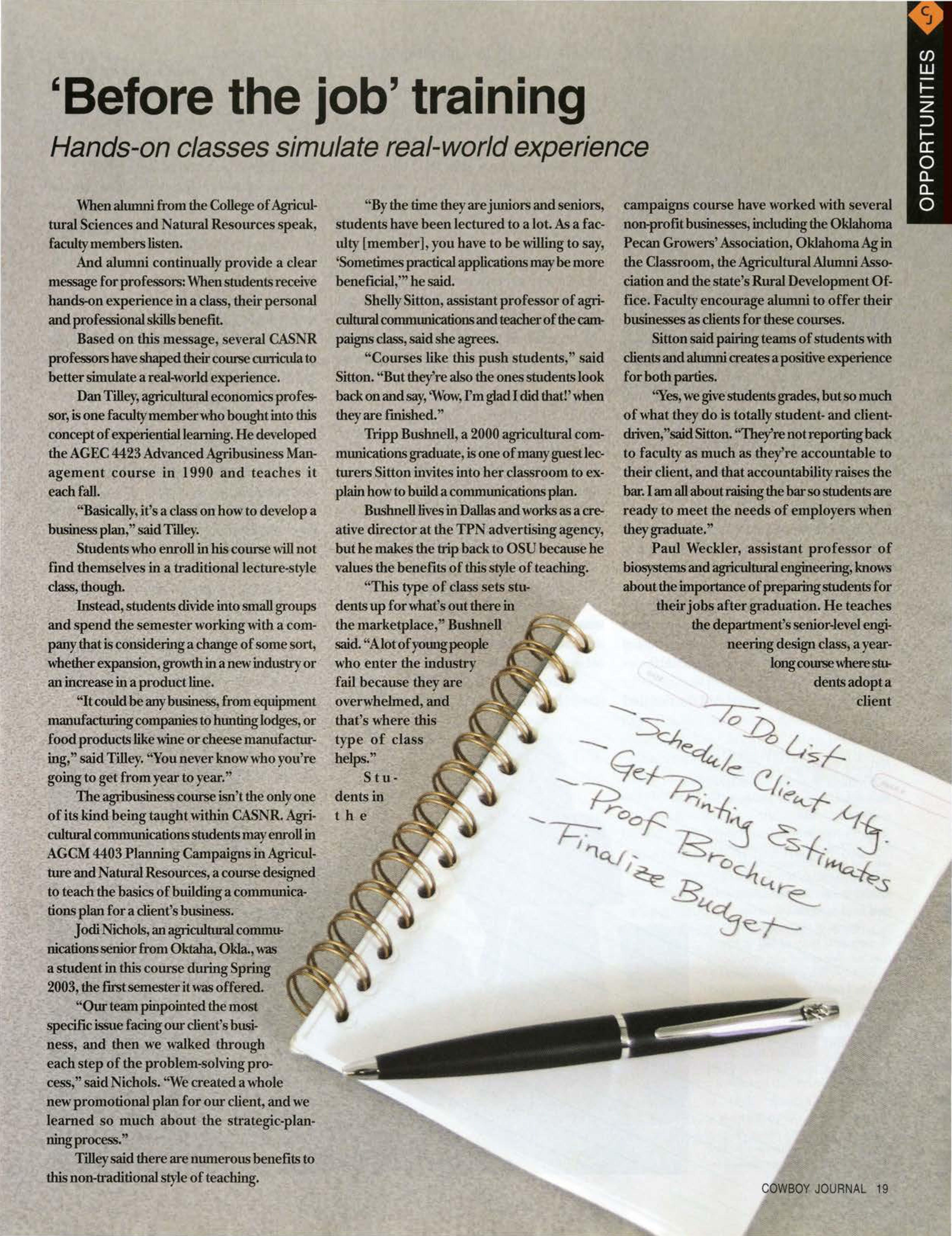 "Beingable to see facilitieslikethe Noble Foundation and how d1eyhelp producers get the best out of their products wasthought provoking for future job opportunities," said La.nehaBeard, 2004animalsciencealumna. "l alsomet contactswho I wouldnot havehad an opportunityto meet ifl had not been involved in this program."