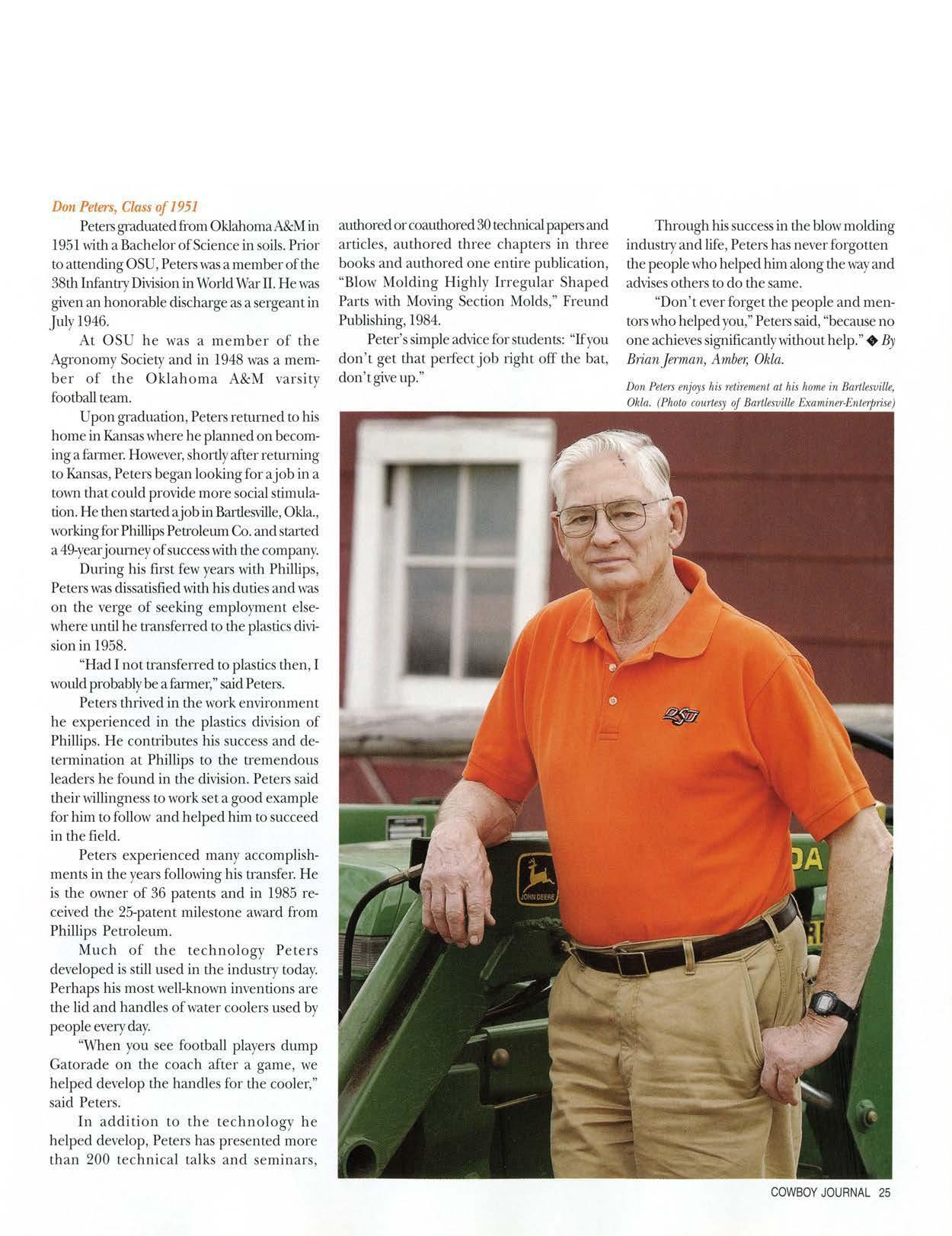Hislm·efor agiiculturehelped Curl make the decision, and he remained dean at Texas Tech for almost 18years before he wasoffered the position of DASNRdean and director arOSU.
