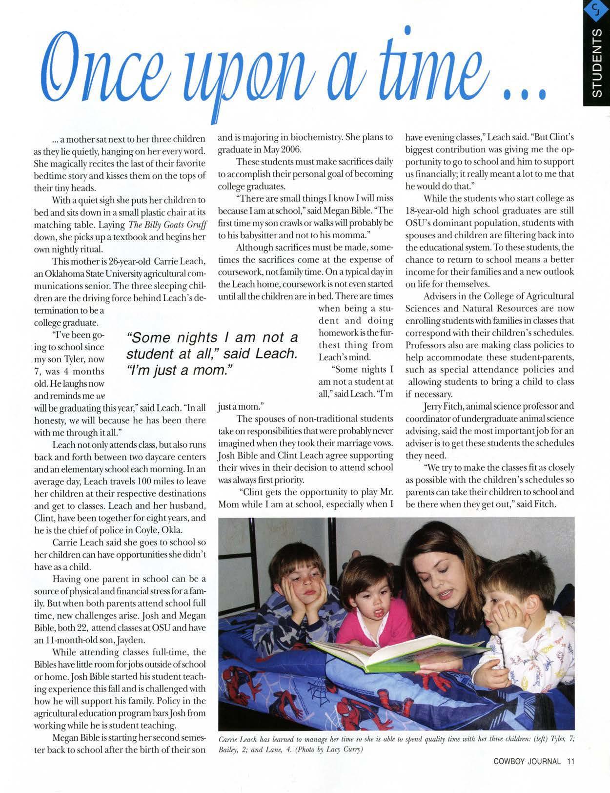 This mot11eris 26-year-0ldCarrie Leach, an OklahomaStateUniversityagiiculturalcommunications senior. The three sleeping children are the diiving force behind Leach's determinationto be a collegegraduate.