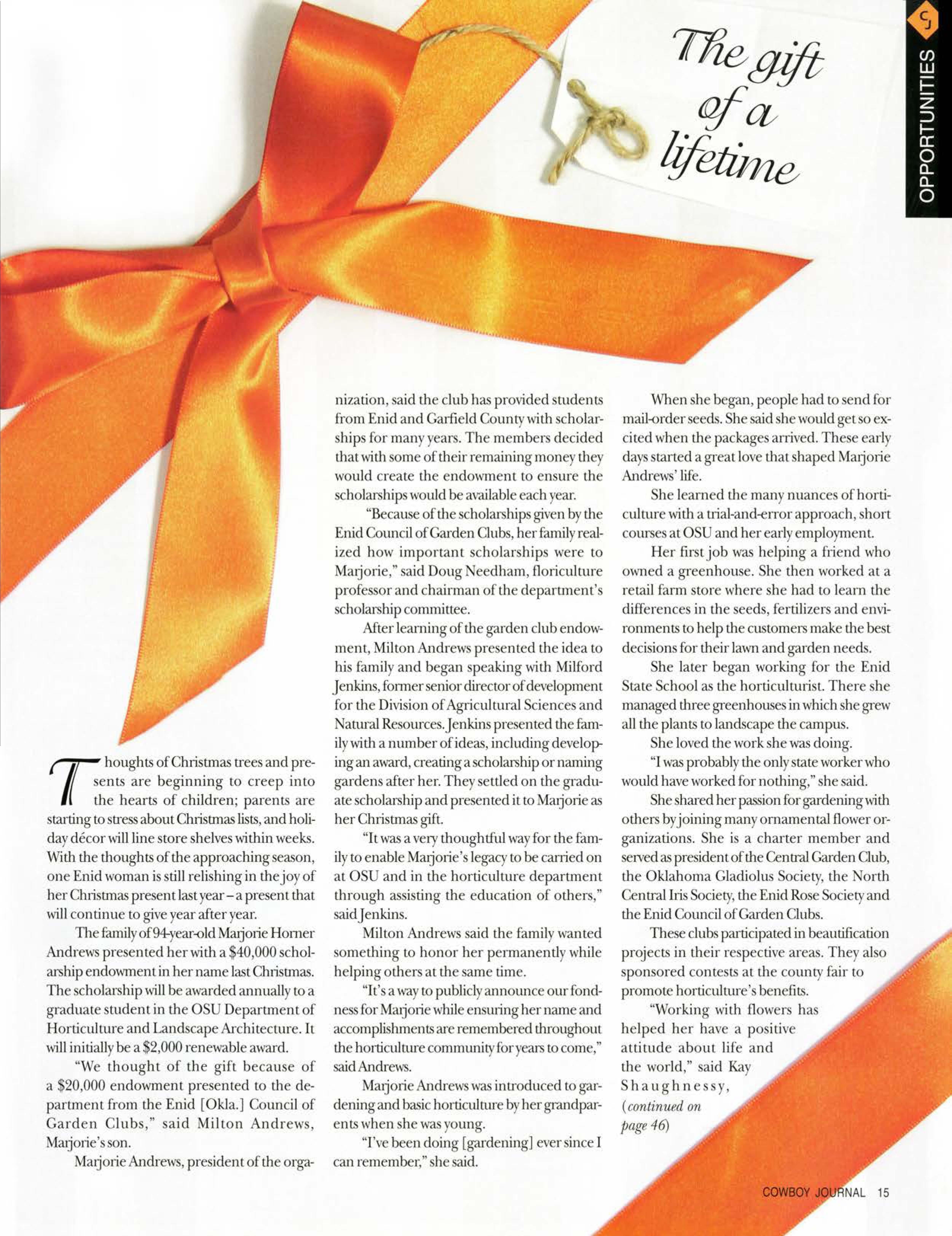 Th M,ujo,ie Horner Andre, Graduate tudent cholar hip ,,~II upport more OS tud nts each year and help keep the Chri tma piriLalive in the hearts of By Ben Hum/1/irey, oble,Okla.