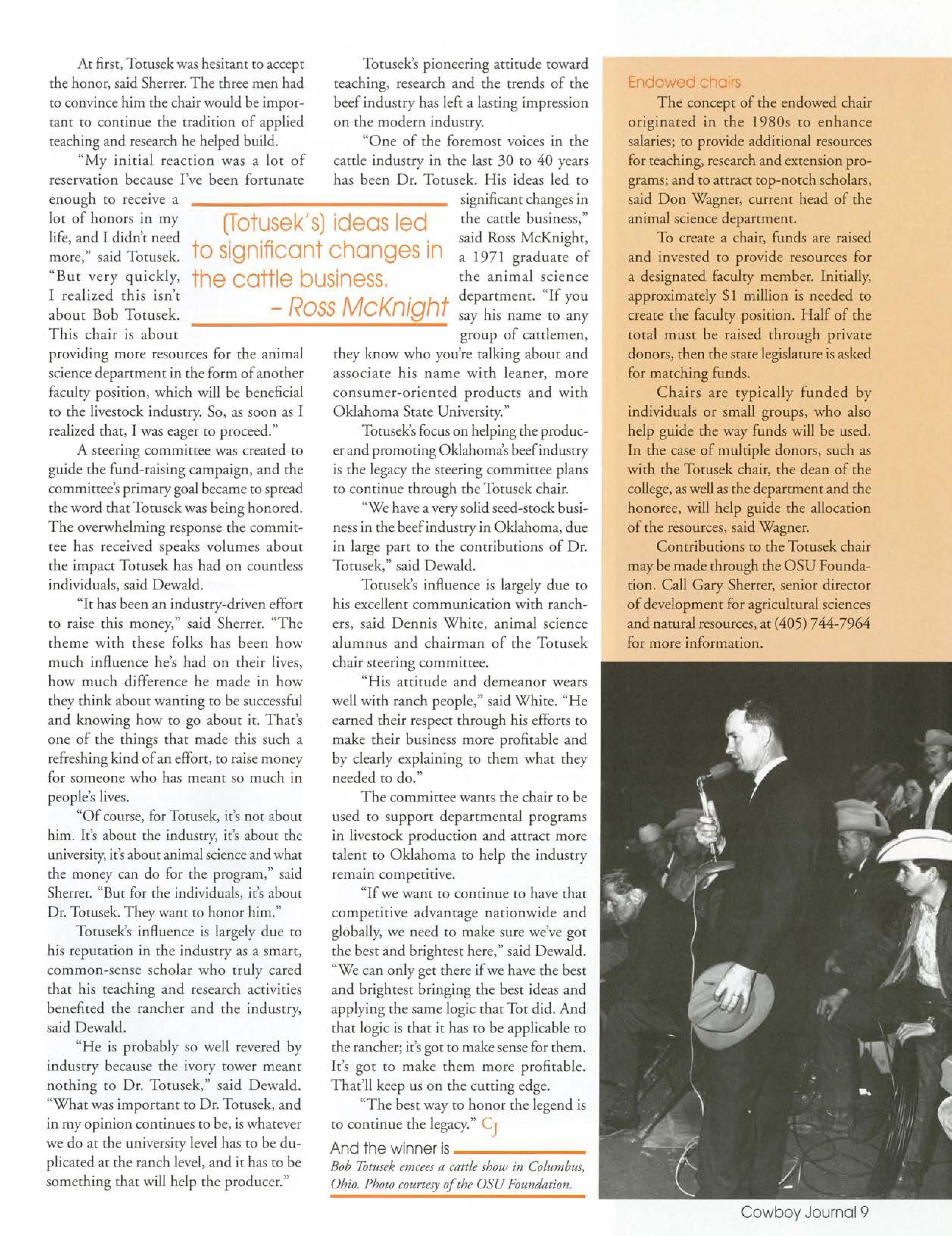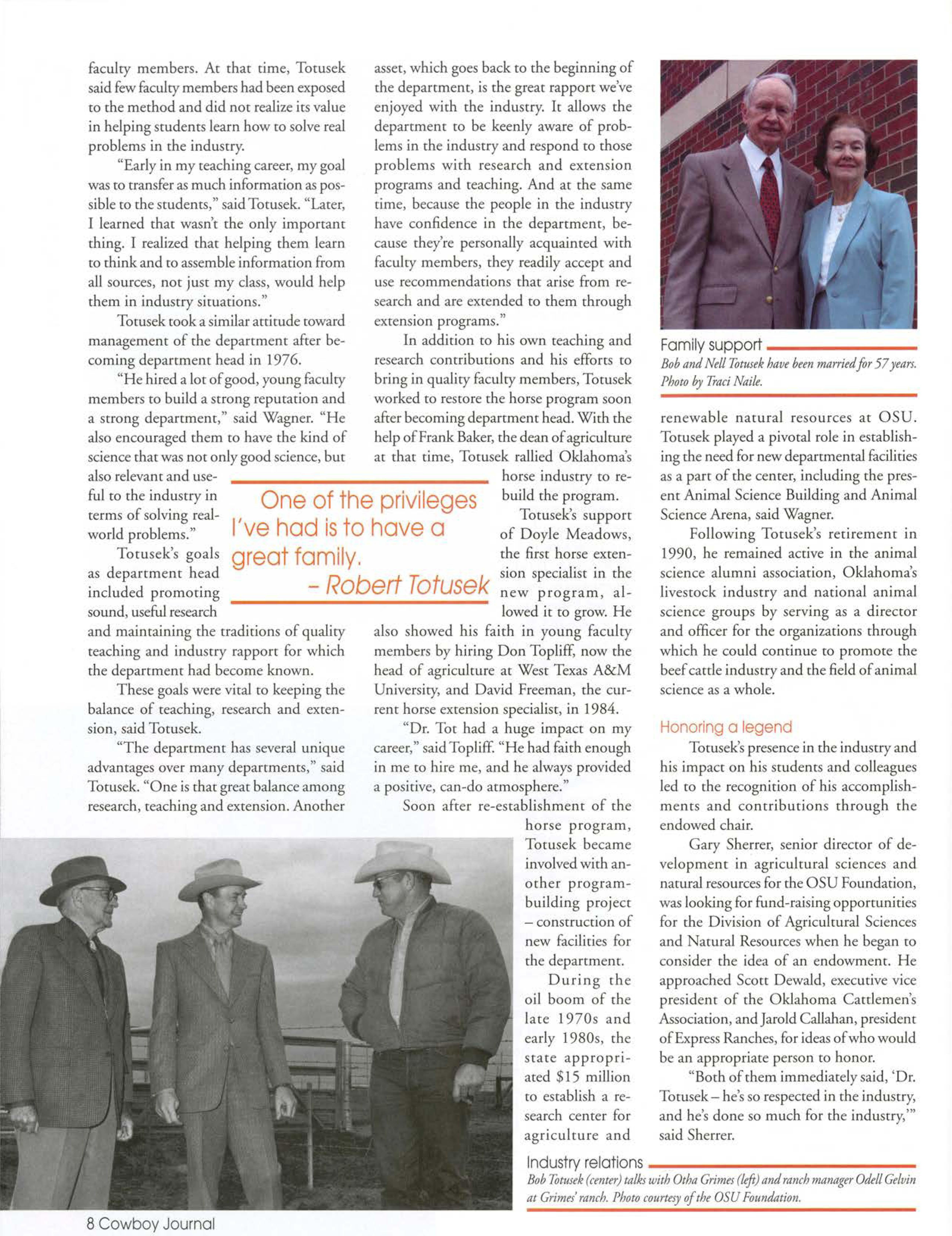 In January, a fund-raising campaign co create che Roberr "Bob" Totusek Endowed Chair in Animal Science kicked off