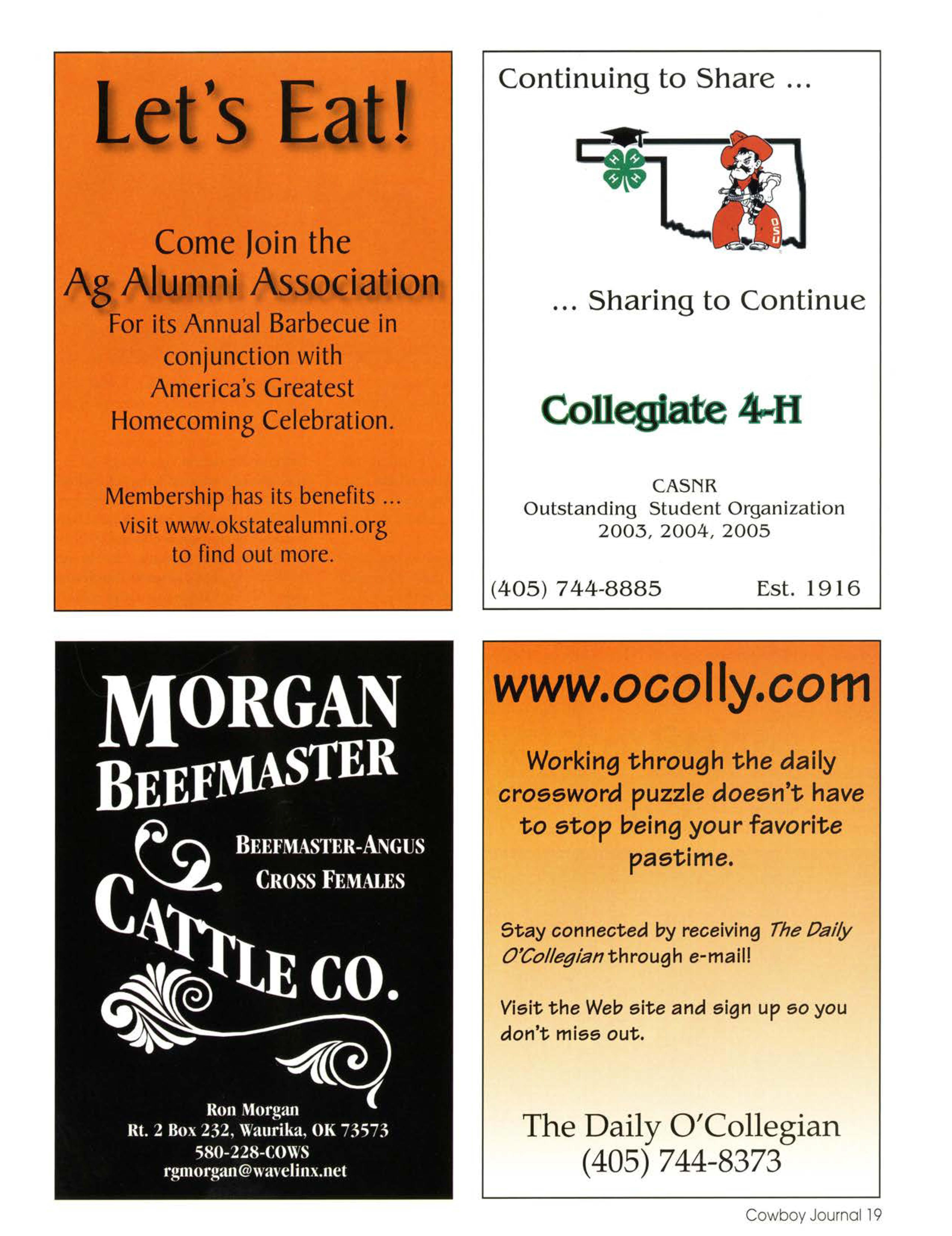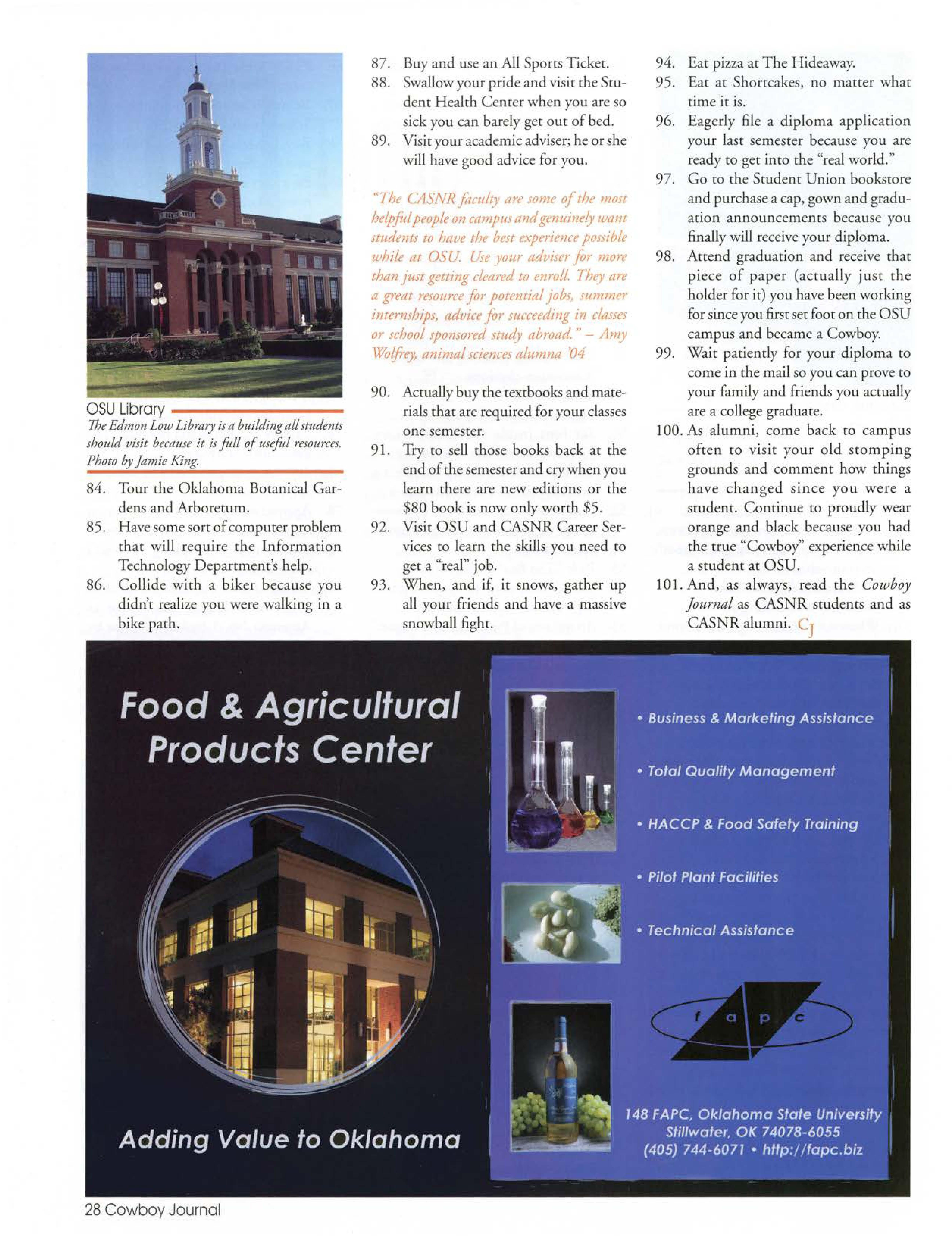 Vi~it'he Cowboy Juurnol Web site http:// cowboyjournal. okstate. edu
