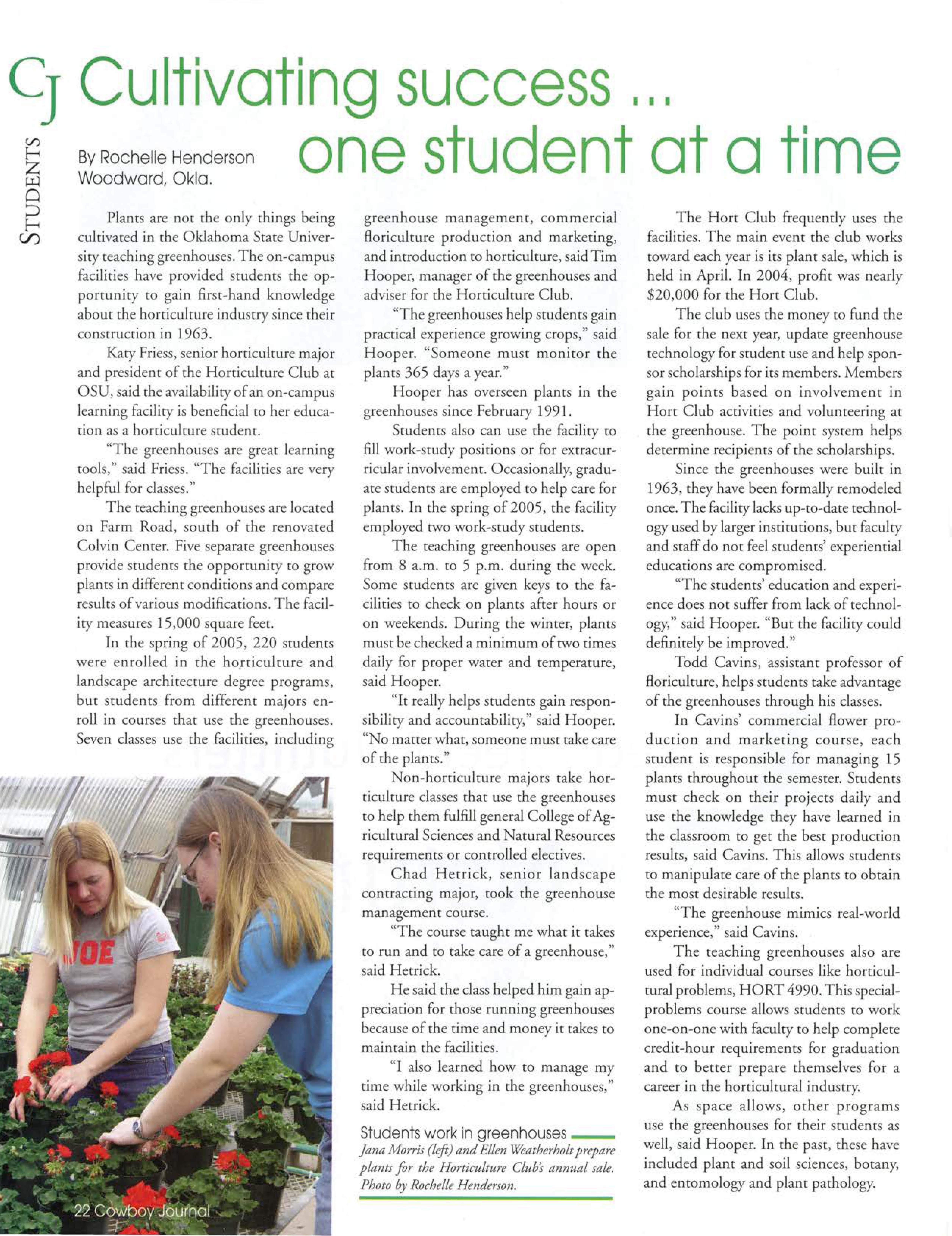22 Cultivating success one student at a time