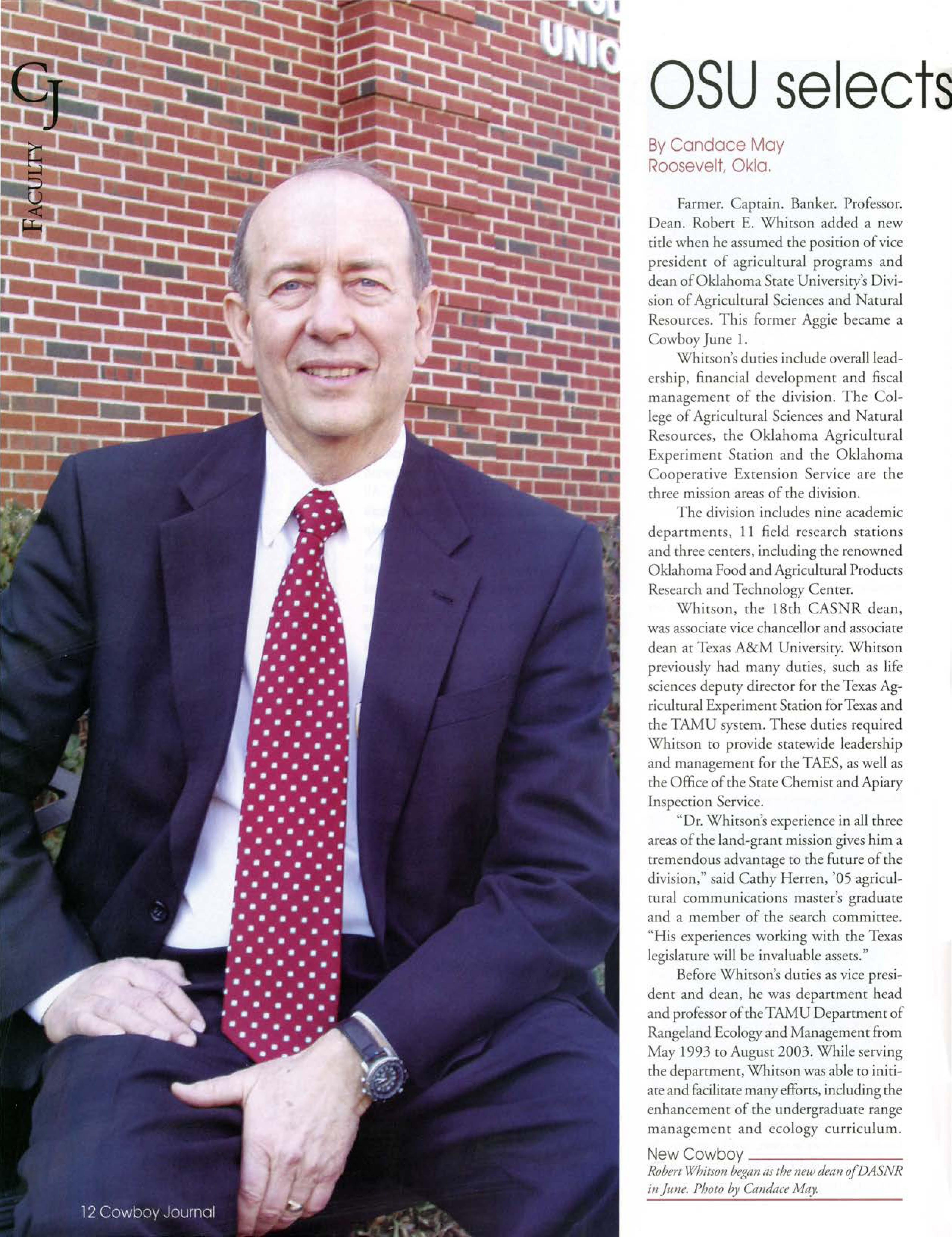 Eighteenth dean makes transition from Aggie to Cowboy