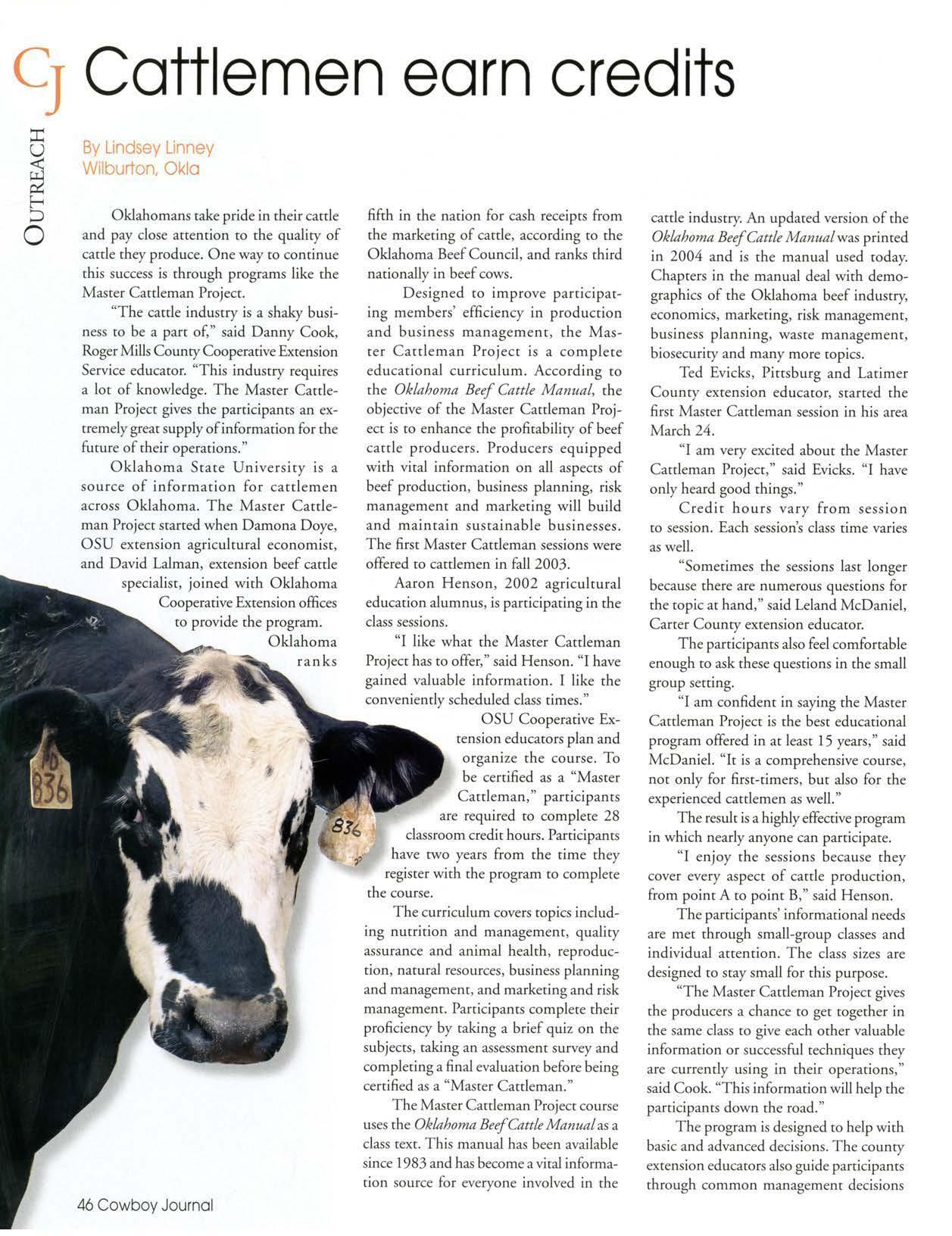 Oklahomans rake pride in their cattle and pay close attention co the quality of carde they produce. One way ro concinue this success is through programs like the Master Cartleman Project.