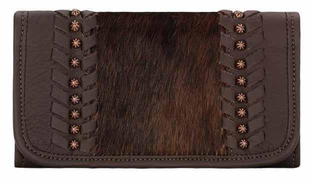 Free and easy styling is just part of the Cow Town collection’s irresistible charm. Created in soft, tumbled genuine leathers and trimmed with genuine hair-on cowhide, these wallets will create a striking accent to your favorite handbag. Leather lacing and antiqued spots add an extra touch of class. These wallets are the perfect accessory to keep you organized and fashionable. www.americanwest.cc
