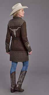 WOMEN’S RETRO STYLE BELTED CARDIGAN WITH STEER HEAD ON CENTER BACK AND STARS ON CUFFSTETSON.COM