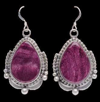 Navajo silversmith Tom Lewis creates a true masterpiece in this colorful spiny oyster shell squash blossom necklace and earrings set—a fusion of elegance and exuberance. Crafted to perfection, the squash blossom-style necklace features vibrant spiny oyster shell cabochons that encapsulate the vivacity of desert sunsets. With matching earrings that invoke the same spirit, this set is more than jewelry—it’s a bold statement of style and a celebration of the Southwest’s radiant hues. www.samsvillegallery.com