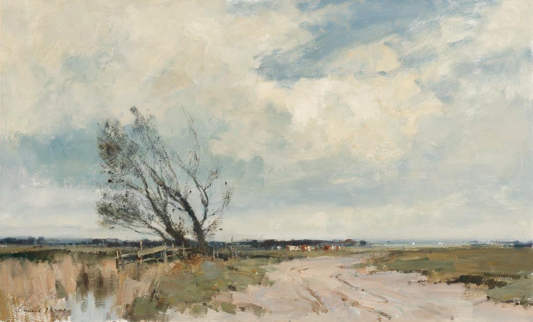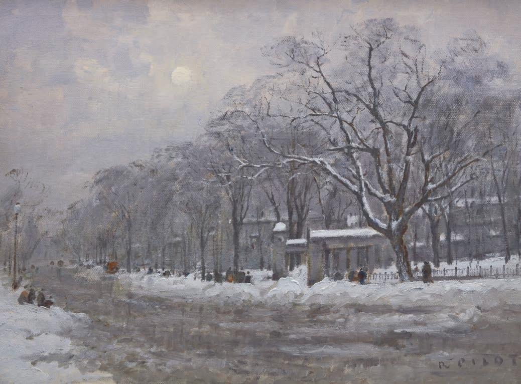 In 1888, Maurice Cullen moved from Montreal to Paris to study at the École des Beaux-Arts. Cullen also pursued his training at Académie Julian, where he encountered fellow Canadian painters George A. Reid, William Brymner and James Wilson Morrice. While in Paris, Cullen met several French Impressionist artists, viewing their exhibitions and absorbing their in $uence. Cullen exhibited at the Salon in 1895 and was the " rst Canadian to be o#ered an associate membership to the Societé nationale des beaux-arts. Despite his