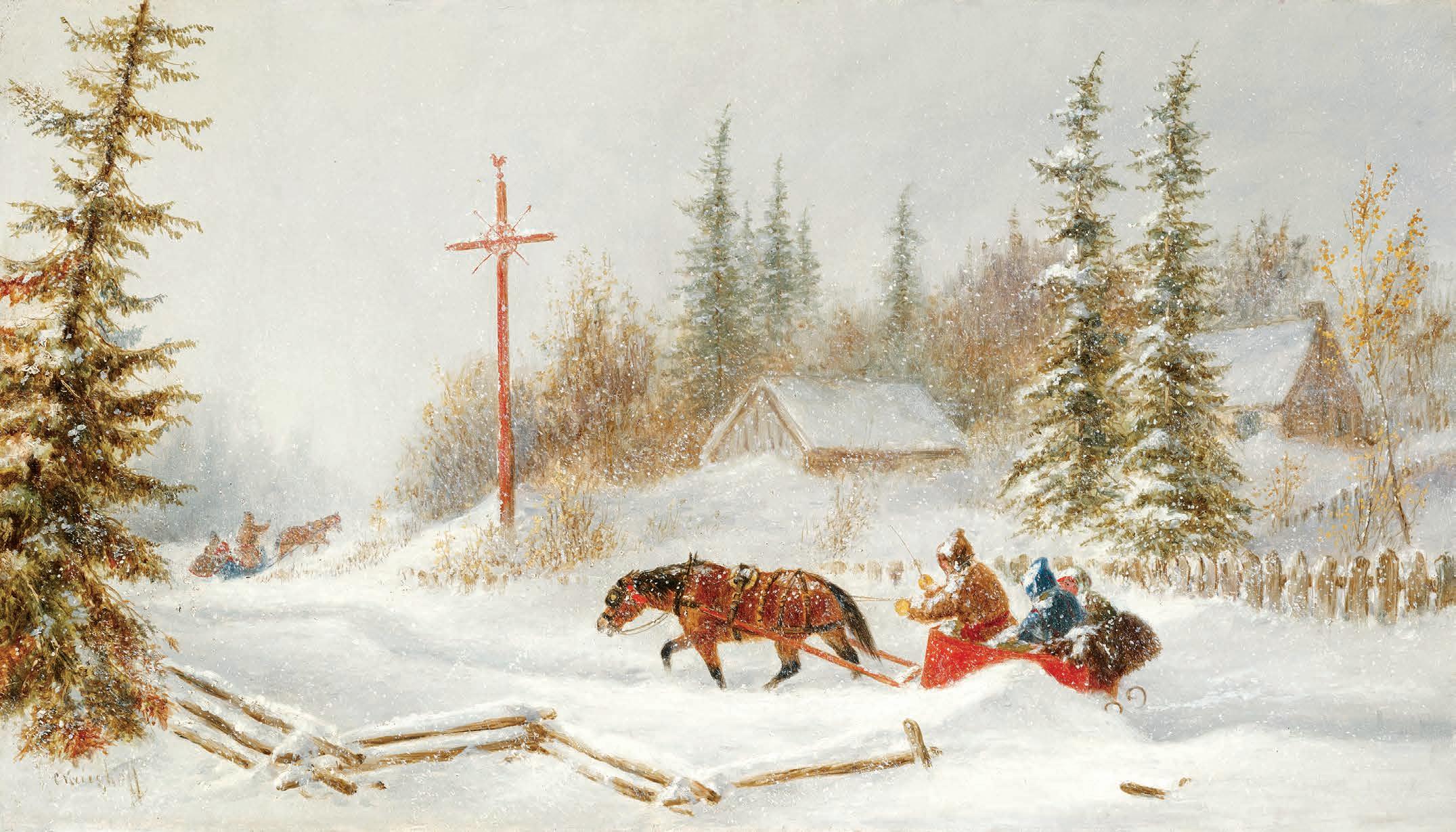 With " xed determination, Cullen sketched outdoors, often while standing in frigid temperatures on snowshoes. !e painter would make and prepare his own small painting boards, on which he would sketch on-site. Cullen would then work them up to larger canvases in his studio during the summer months. Later, the same methodology would become the core practice of the artists of the Group of Seven. Winter, Mont Tremblant wonderfully exempli "es Cullen’s mastery at capturing the subtle play of sunlight on snow. !e Laurentian mountain rises grandly in the distance, deftly rendered in shifting, warm hues. Prakash observed, “He excelled in crisp winter landscapes in the radiant northern light… He was determined to record the texture and varied colours of his country in impasto layers of paint - and no other Impressionist artist did it better.”