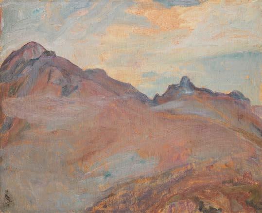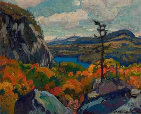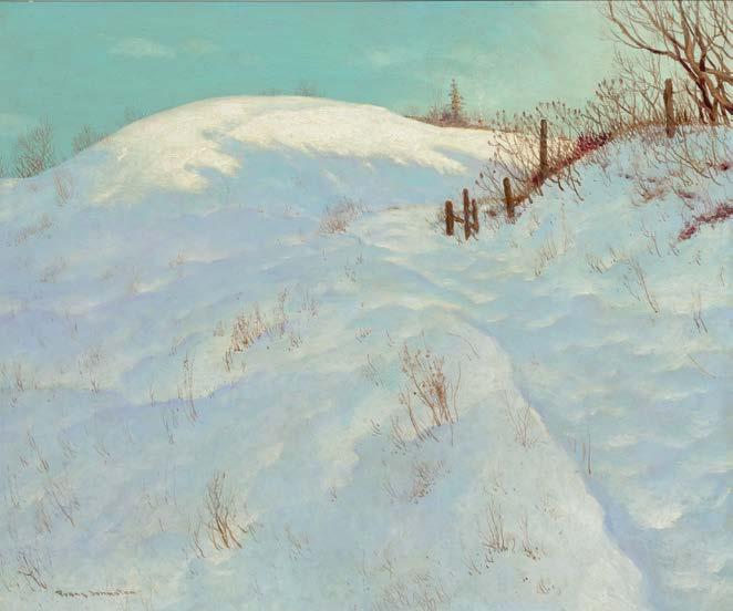 left Toronto to become principal of the Winnipeg School of Art and formally broke with the Group in 1922. As his career evolved, Johnston’s landscapes increasingly reflected his interest in turn-of-thecentury ideals, displaying much greater atmospheric and decorative qualities than his fellow Group of Seven members. The Golden Dome is a strong example of the artist's ability to capture the interplay of light, colour and pattern in nature. The setting of a snow-covered hillside lends itself especially well to Johnston’s decorative interpretation of the landscape, due to the effect of shadows and shimmering light reflections.