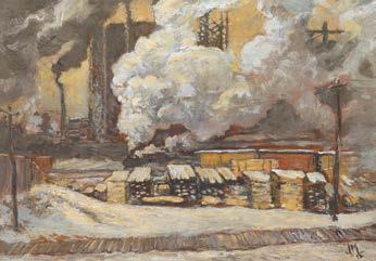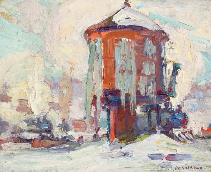 Peter Clapham Sheppard displayed a fascination throughout his career with the architecture and apparatus of the modern city, whether in Toronto, Montreal or New York. Gasworks and locomotives, skyscrapers and shacks, freighters and tugboats—these were the recurring protagonists of many of his works.