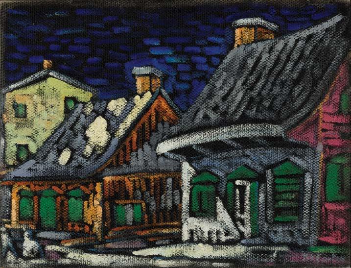 Clarence Gagnon, François Paradis Camping in the Snow, 1928-1933 gouache with watercolour and coloured pencil and/or pastel on paper, 7.25 x 8.75 ins
