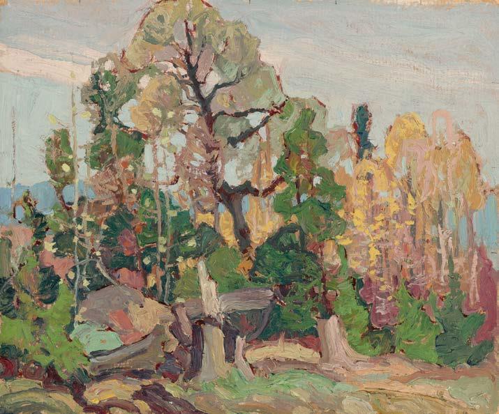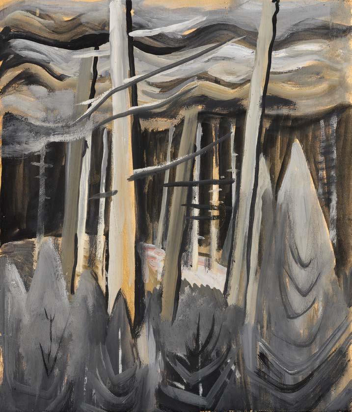 Page 4: Lawren S. Harris, Tamarack Swamp, Algoma, circa 1950 (detail) (Lot 37)