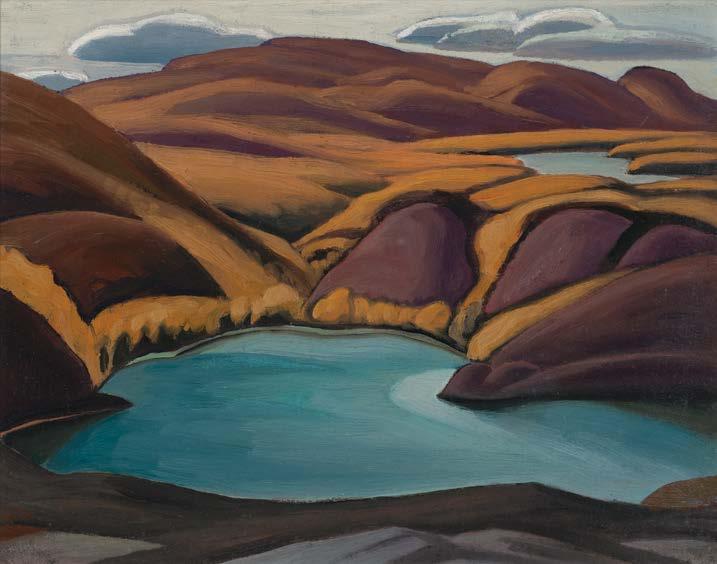 Frank Johnston’s landscapes, more atmospheric and decorative than those of his fellow Group of Seven members, reflect turn-of-the20th-century training. This stylistic difference may explain why he participated only in the Group’s first 1920 show. In 1921, he
